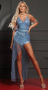 ДЪЛЪГ СЕТ ТОП С ПОЛА MELVINA ДАНТЕЛА ГЛИТЕР ПЕРА СВЕТЛО СИН