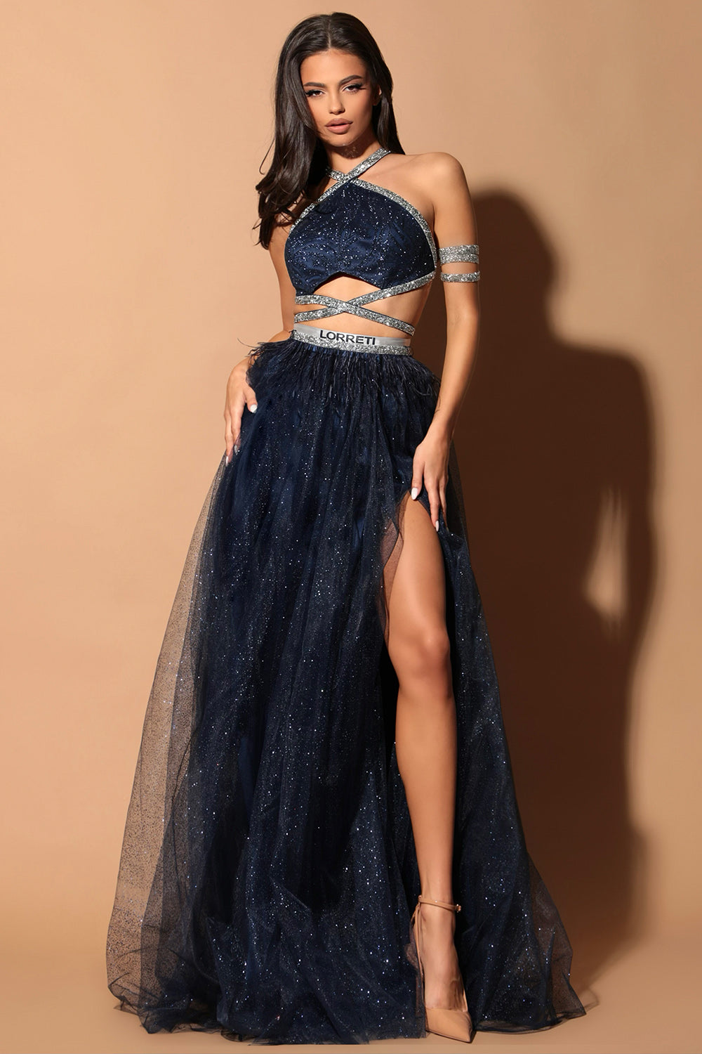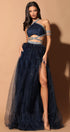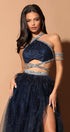 ДЪЛЪГ СЕТ ТОП С ПОЛА MILDRED ДАНТЕЛА ГЛИТЕР ТЮЛ БРОКАТ КАМЪНИ ТЪМНО СИН