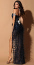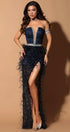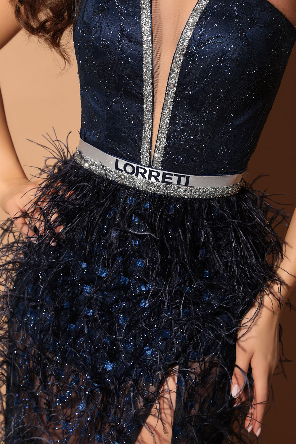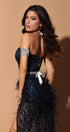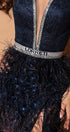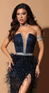 ДЪЛЪГ СЕТ ТОП С ПОЛА MINA ДАНТЕЛА ГЛИТЕР ПЕРА КАМЪНИ ТЪМНО СИН