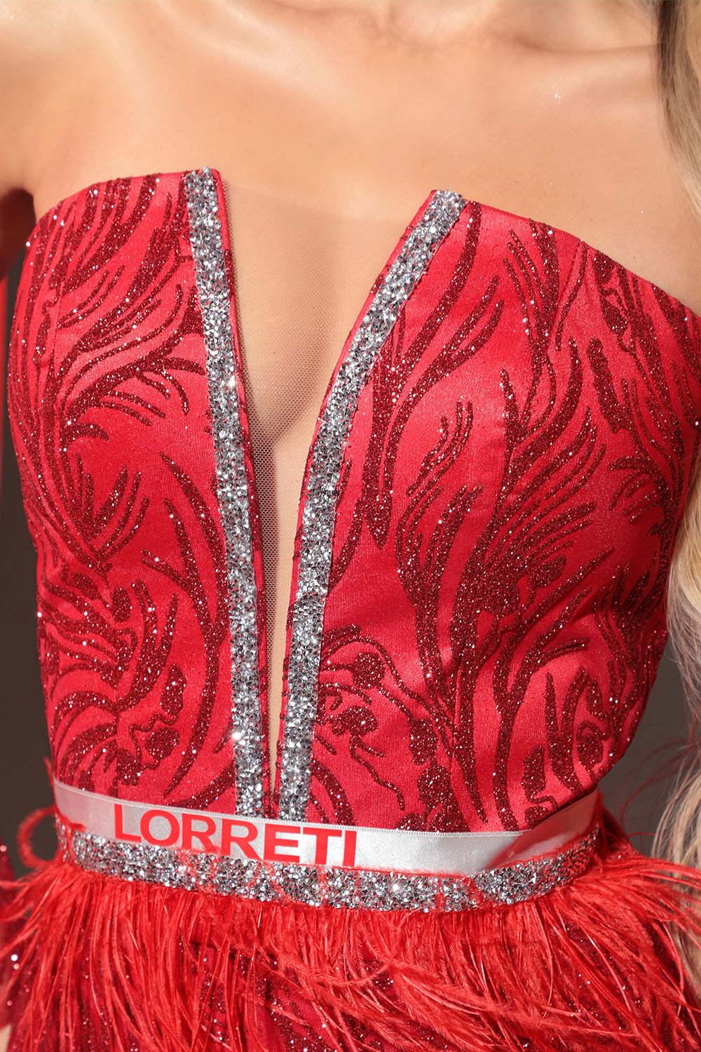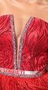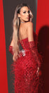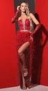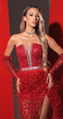 ДЪЛЪГ СЕТ ТОП С ПОЛА MINA ДАНТЕЛА ГЛИТЕР КАМЪНИ ПЕРА ЧЕРВЕН