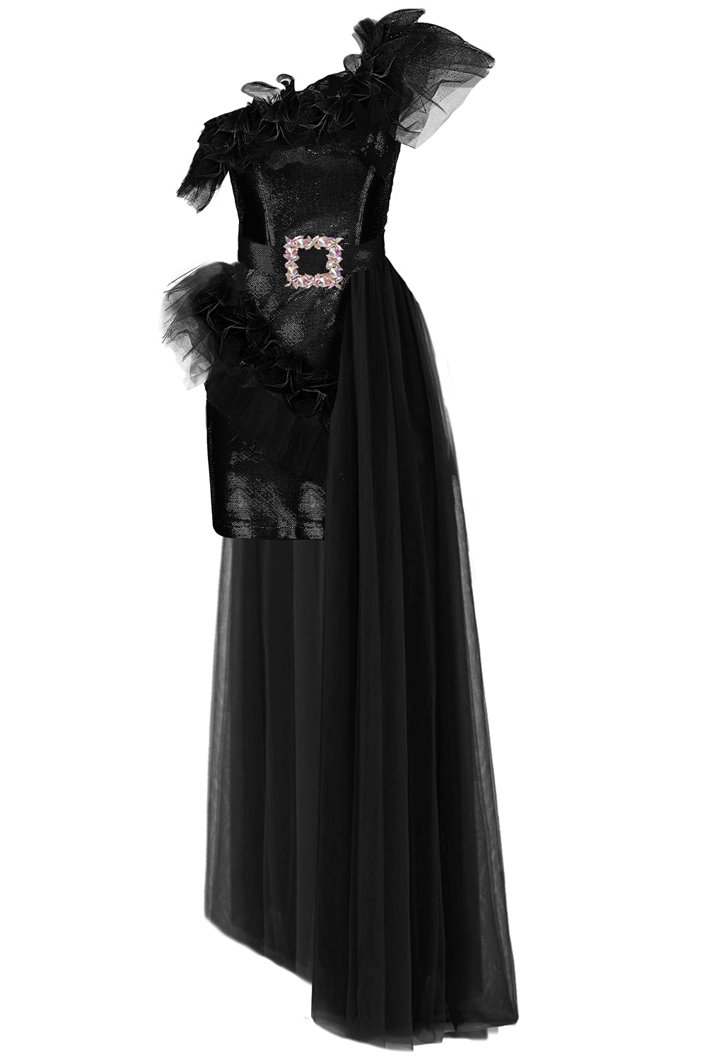 ДЪЛЪГ СЕТ ТОП С ПОЛА NATASHA ЛАМЕ ТЮЛ ЧЕРЕН