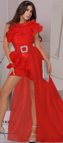ДЪЛГА СЕТ ТОП С ПОЛА NATASHA ЛАМЕ ТЮЛ ЧЕРВЕН