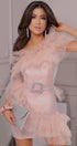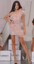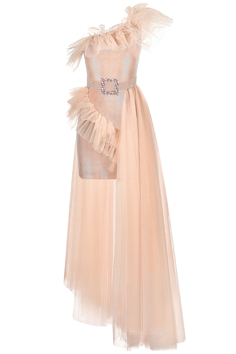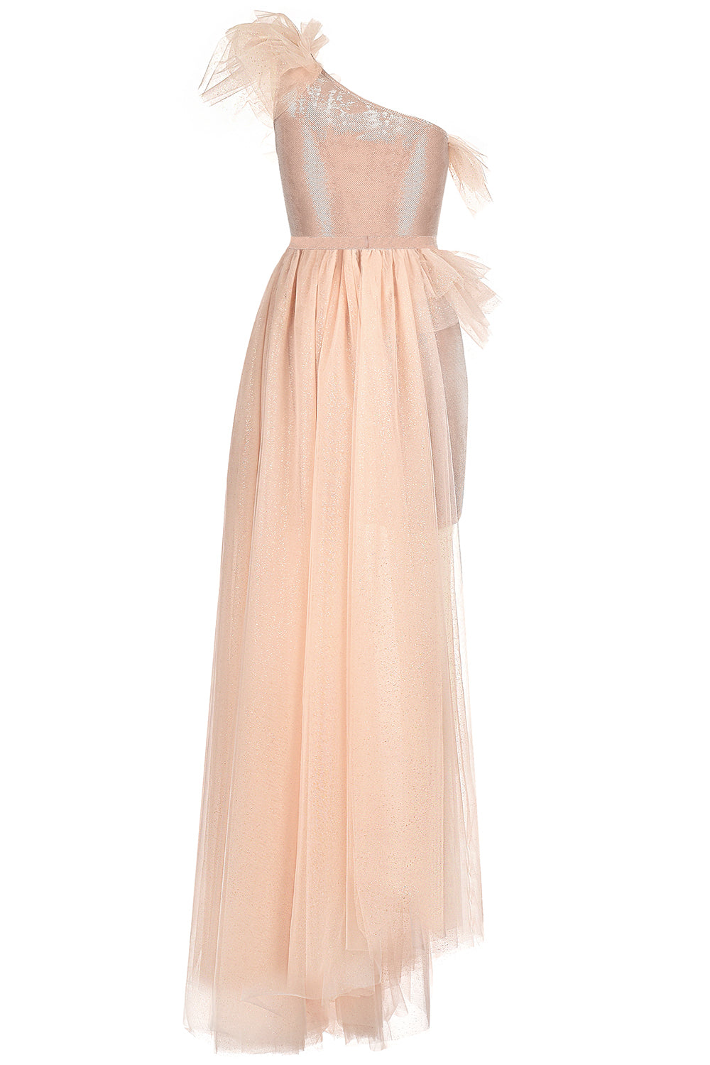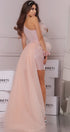 ДЪЛЪГ СЕТ ТОП С ПОЛА NATASHA ЛАМЕ ТЮЛ БРОКАТ РОЗОВО ЗЛАТО