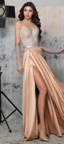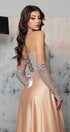ДЪЛЪГ СЕТ ТОП С ПОЛА NINA ДАНТЕЛА ГЛИТЕР КАМЪНИ САТЕН НЮД СЪС СРЕБЪРЕН
