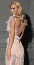 ДЪЛЪГ СЕТ ТОП С ПОЛА NORA ДАНТЕЛА ГЛИТЕР БЯЛ С НЮД