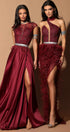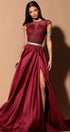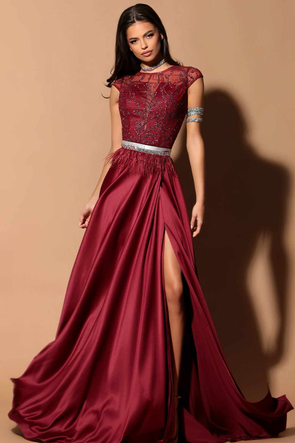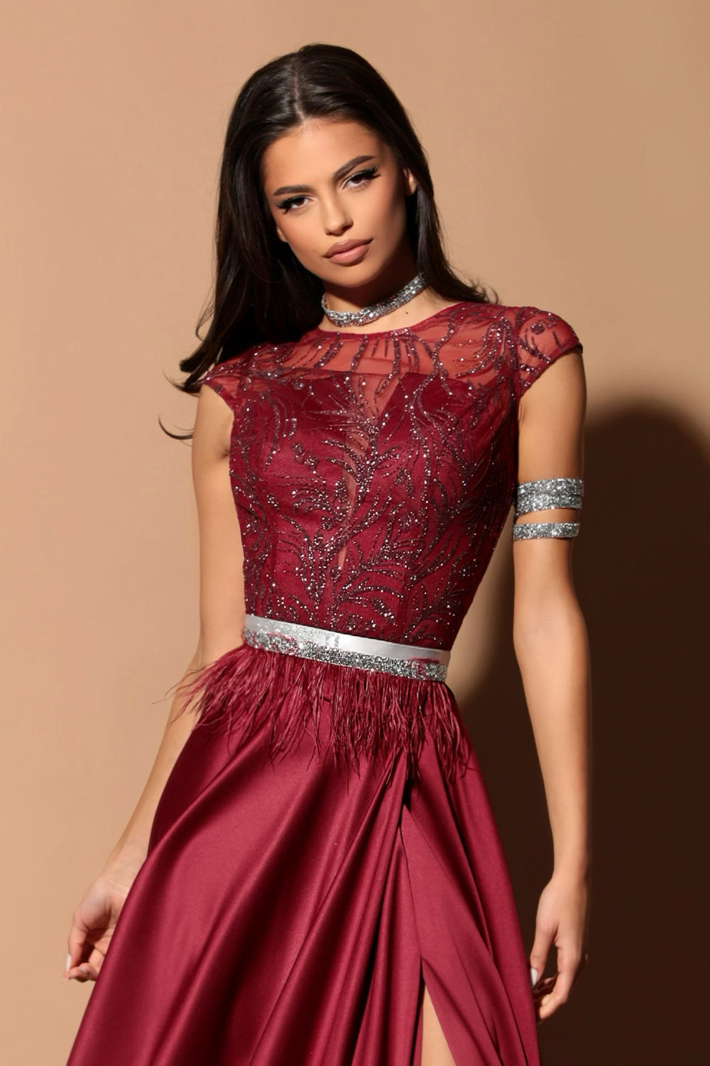 ДЪЛЪГ СЕТ ТОП С ПОЛА NORABEL ДАНТЕЛА ГЛИТЕР САТЕН БОРДО