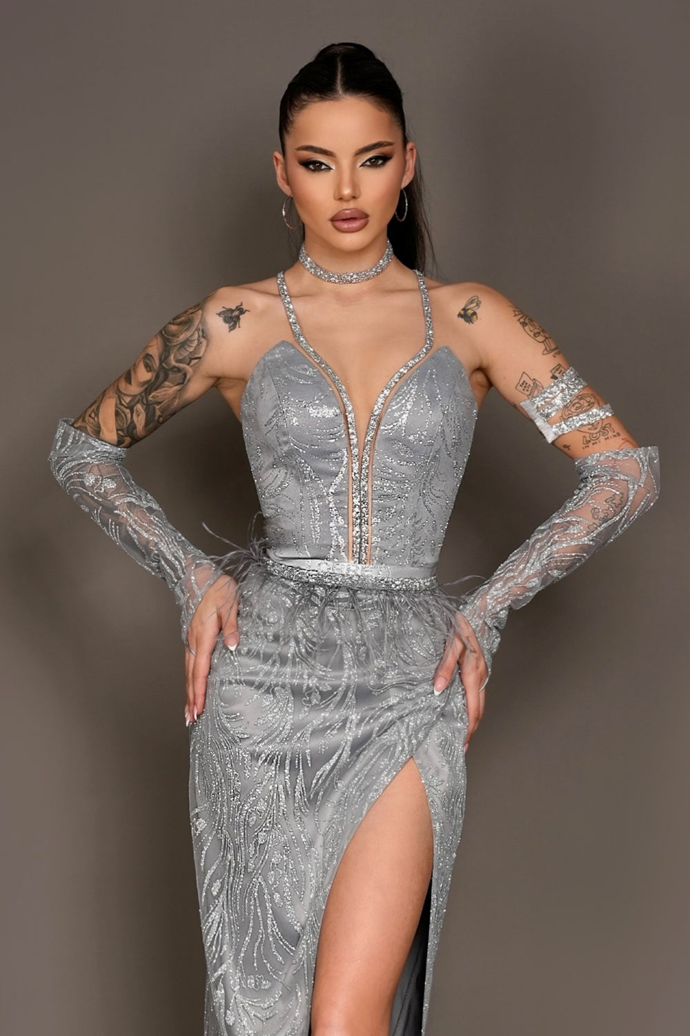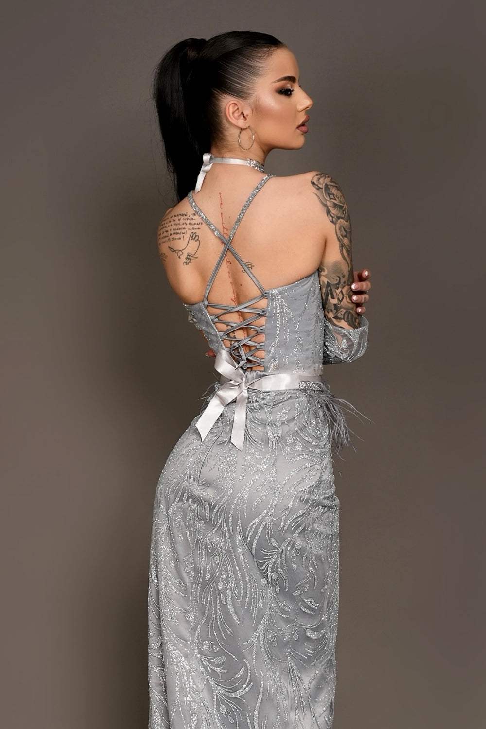 ДЪЛЪГ СЕТ ТОП С ПОЛА OLIVIA ДАНТЕЛА ГЛИТЕР КАМЪНИ ГРАФИТ