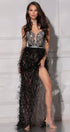 ДЪЛЪГ СЕТ ТОП С ПОЛА OPHELIA ДАНТЕЛА ГЛИТЕР ПЕРА ЧЕРЕН С НЮД