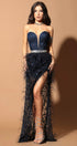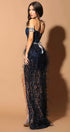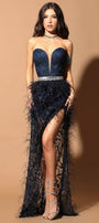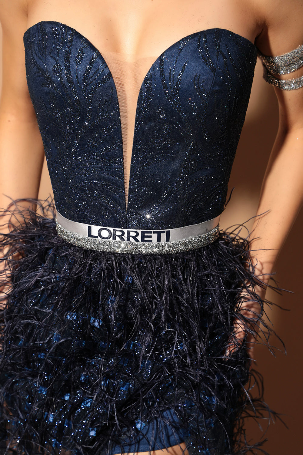 ДЪЛЪГ СЕТ ТОП С ПОЛА OPHELIA ДАНТЕЛА ГЛИТЕР ПЕРА ТЪМНО СИН