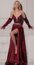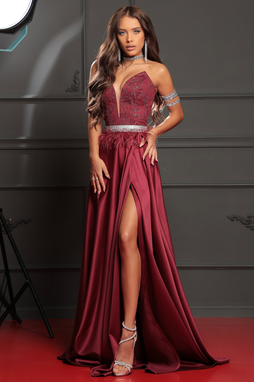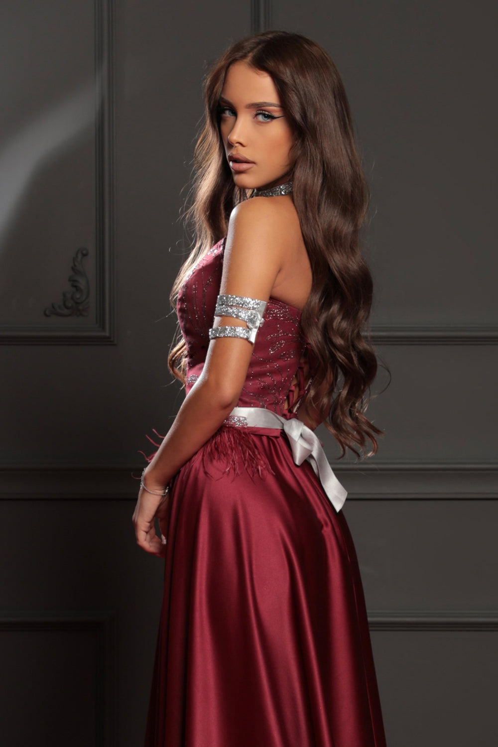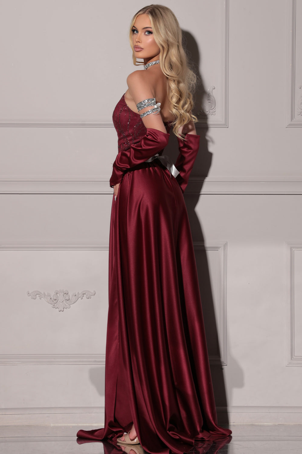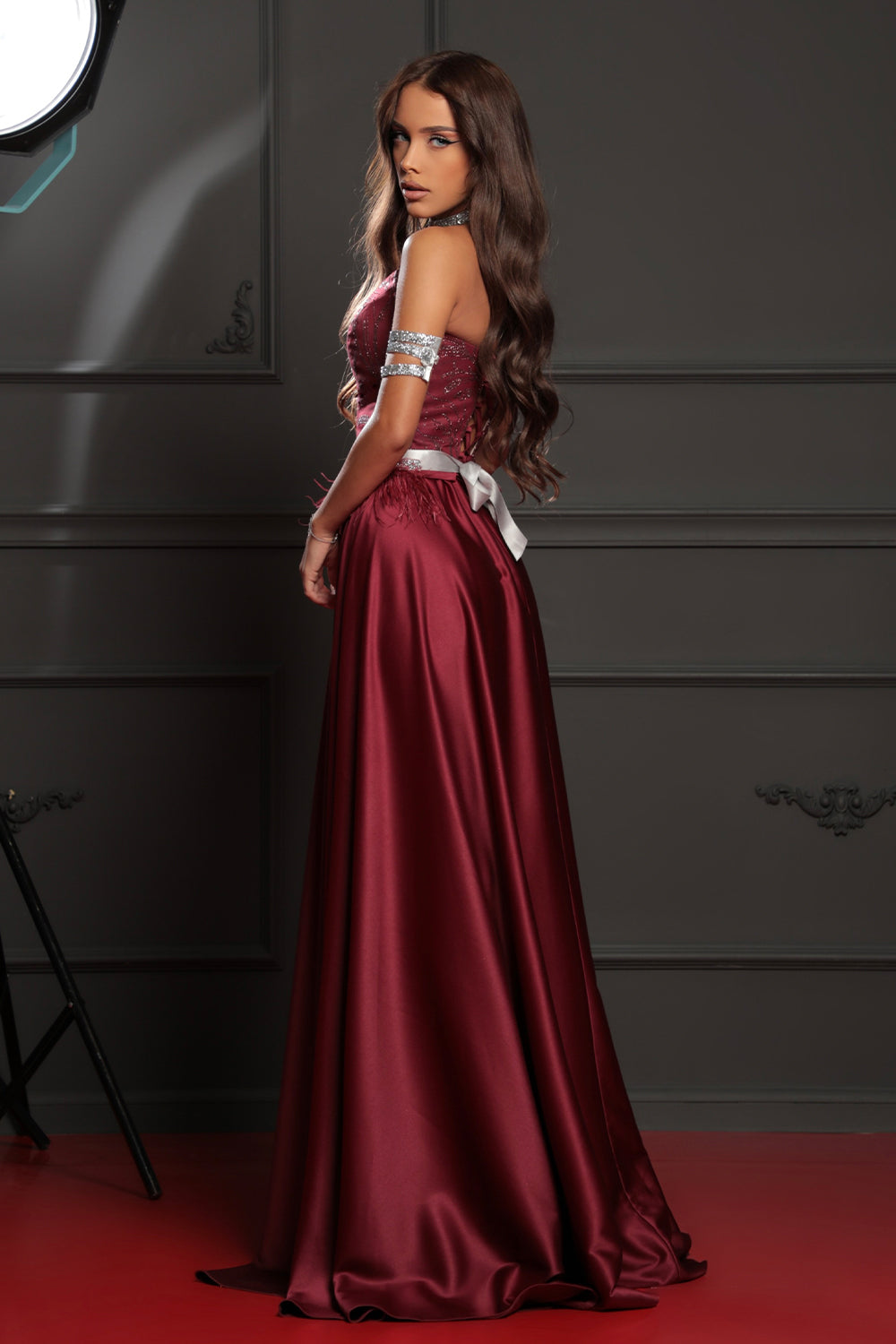 ДЪЛЪГ СЕТ ТОП С ПОЛА ORIANNA ДАНТЕЛА ГЛИТЕР САТЕН БОРДО