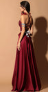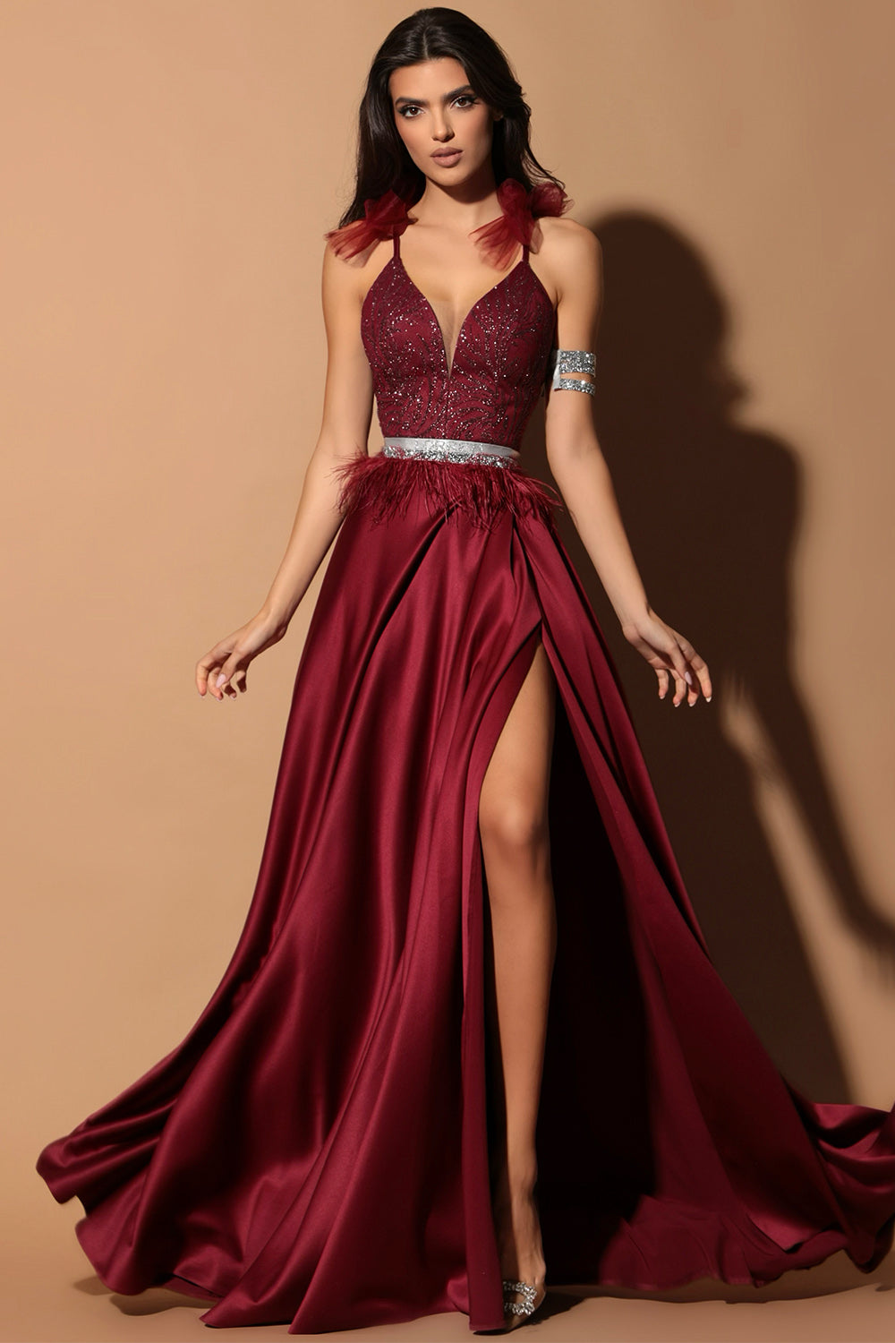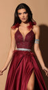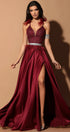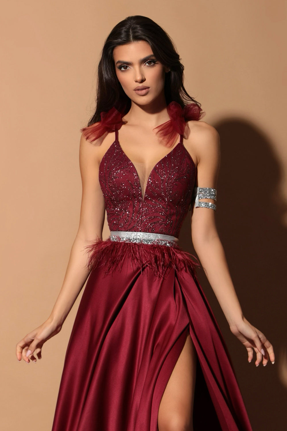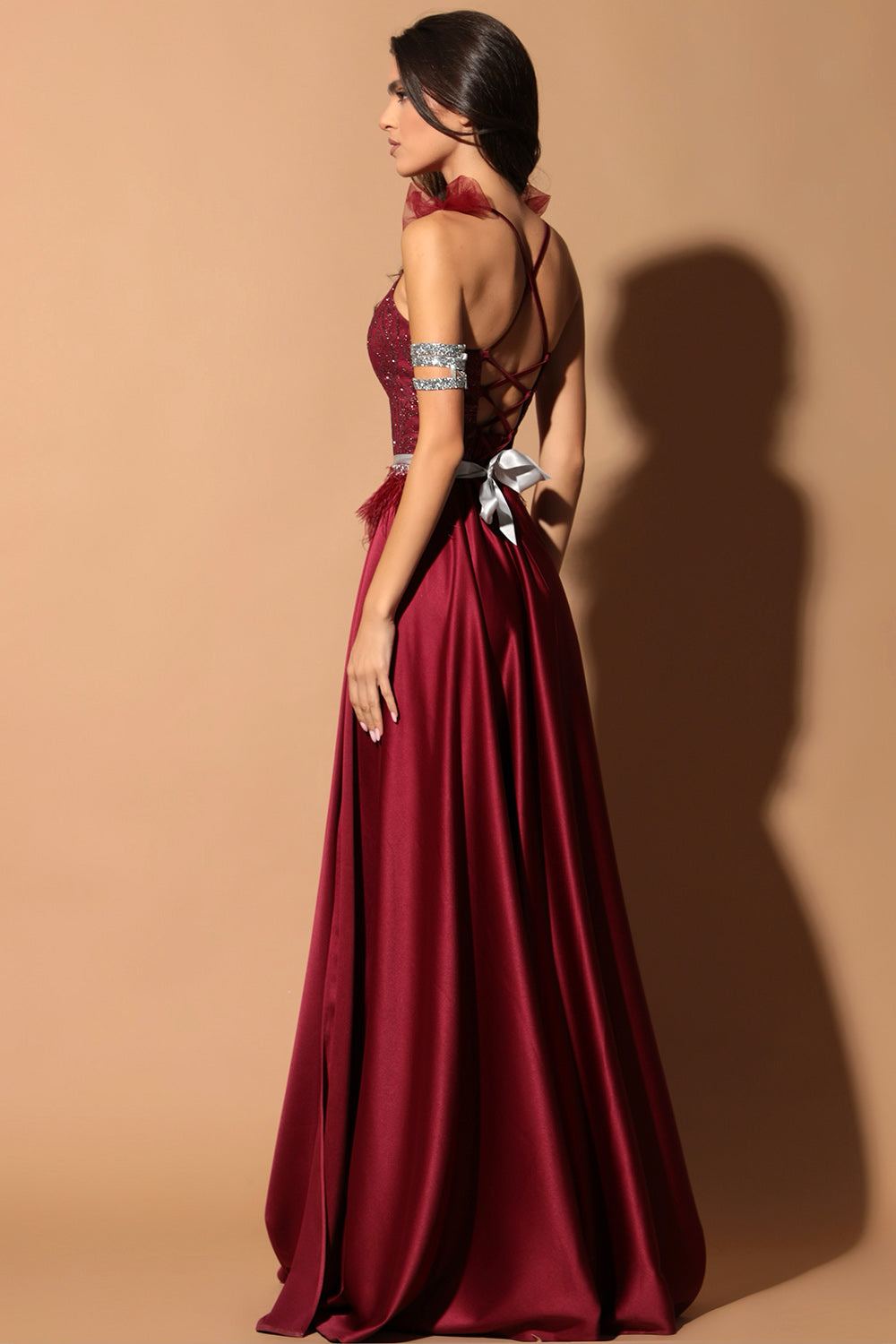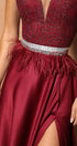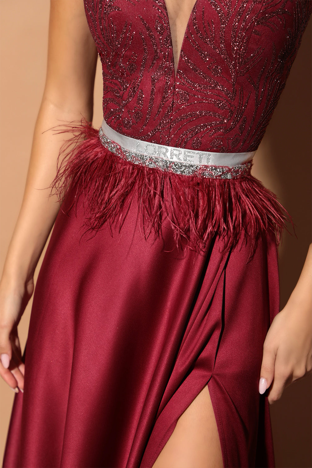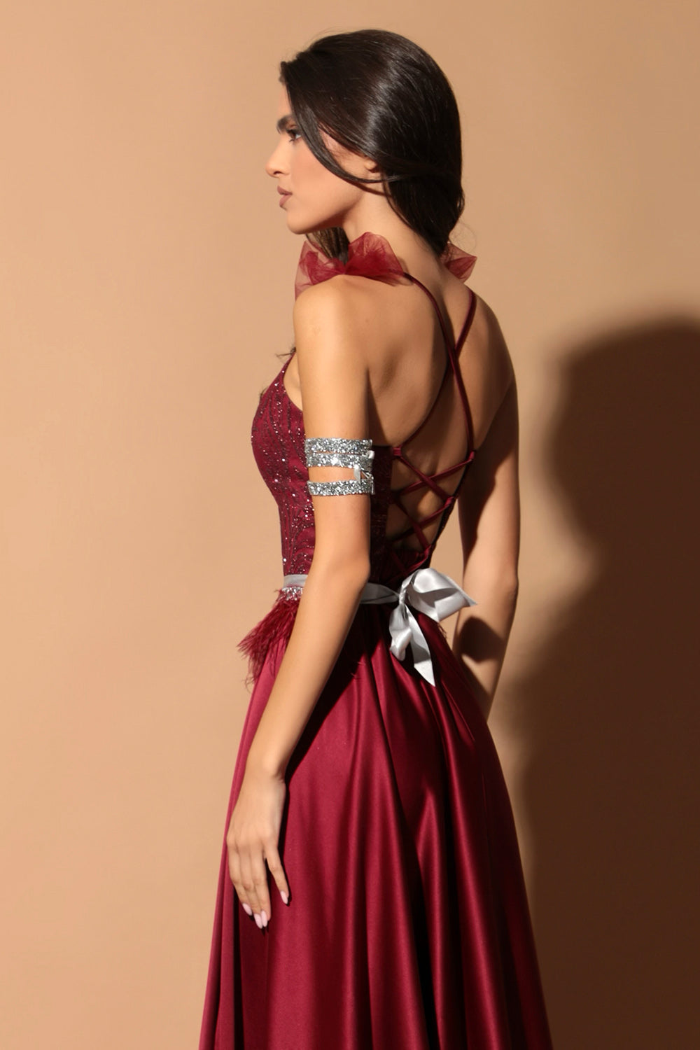 ДЪЛЪГ СЕТ ТОП С ПОЛА PARIS ДАНТЕЛА ГЛИТЕР САТЕН БОРДО