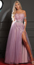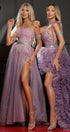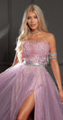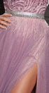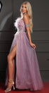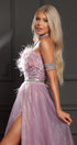 ДЪЛЪГ СЕТ ТОП С ПОЛА PENELOPE ДАНТЕЛА ГЛИТЕР ПЕРА ТЮЛ БРОКАТ ЛАВАНДУЛА