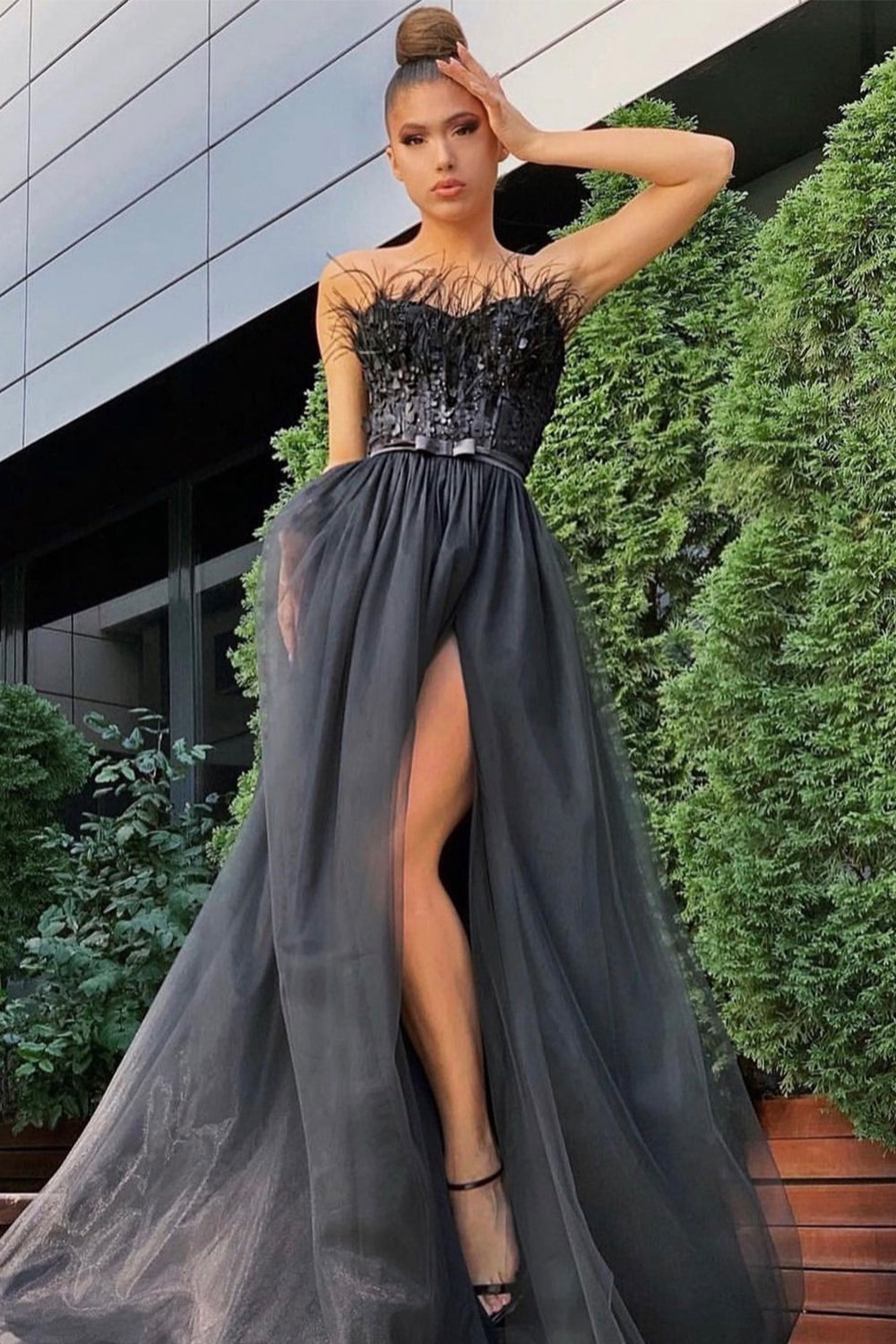 ДЪЛГА СЕТ ТОП С ПОЛА PENELOPE ДАНТЕЛА ПЕРА ТЮЛ ЧЕРЕН