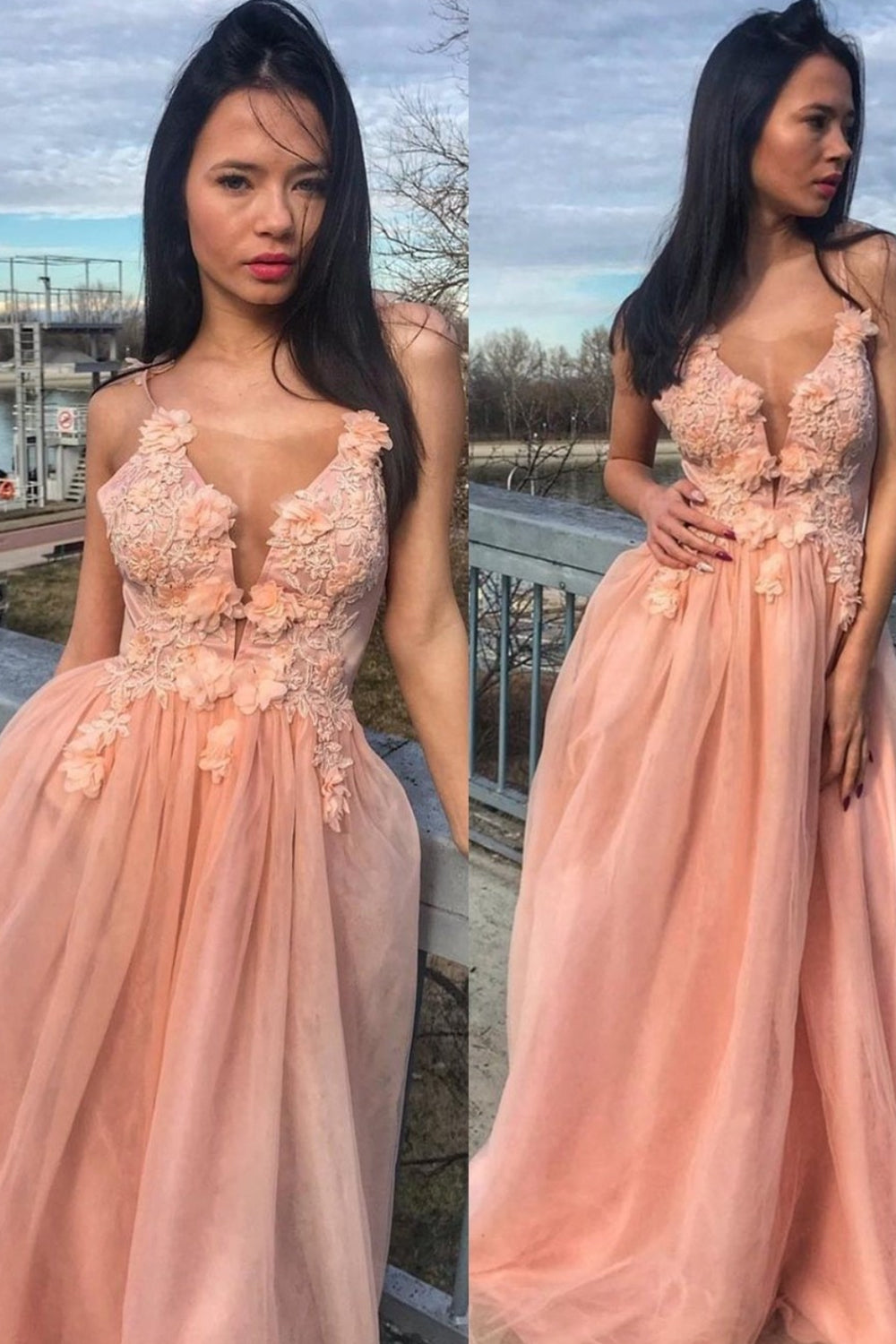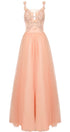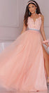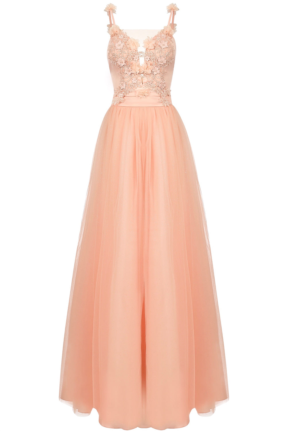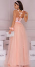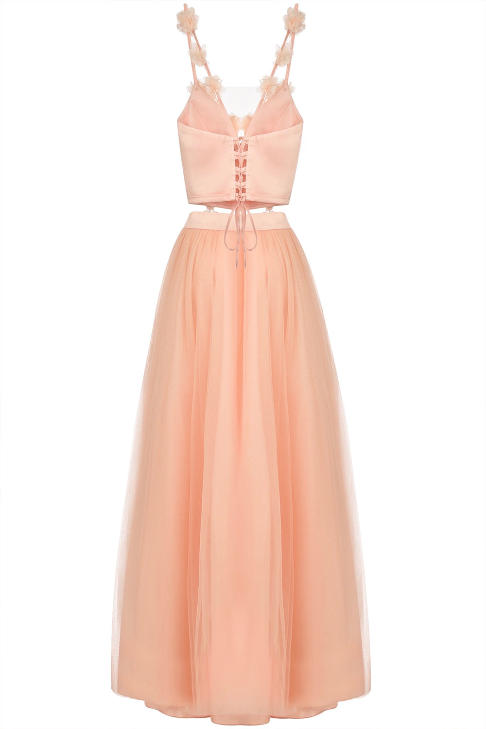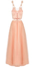 ДЪЛЪГ СЕТ PERLA 2 ЧАСТИ ТОП С ПОЛА ДАНТЕЛА ТЮЛ БРОКАТ НЕЖНА ПРАСКОВА