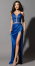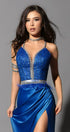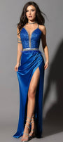 ДЪЛЪГ СЕТ ТОП С ПОЛА PIPER ДАНТЕЛА ГЛИТЕР КАМЪНИ САТЕН КОБАЛТОВО СИН