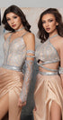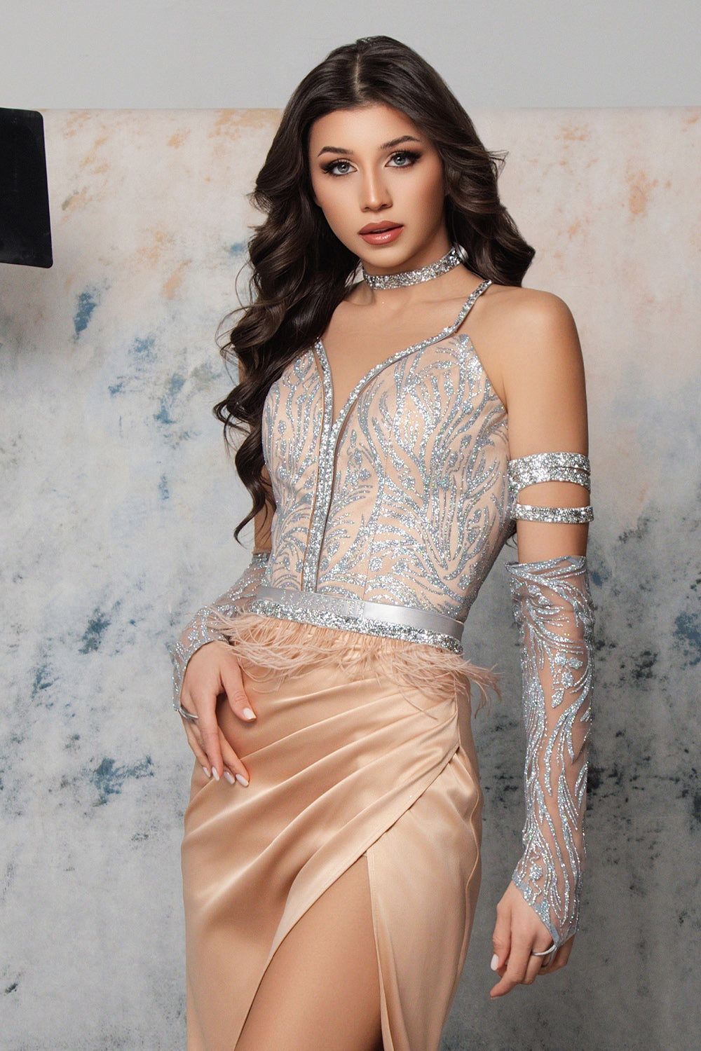 ДЪЛЪГ СЕТ ТОП С ПОЛА PIPER ДАНТЕЛА ГЛИТЕР КАМЪНИ САТЕН НЮД СЪС СРЕБЪРЕН