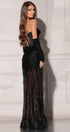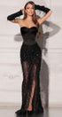 ДЪЛЪГ СЕТ ТОП С ПОЛА RAELYNN САТЕН ПАЙЕТИ ПЕРА ЧЕРЕН