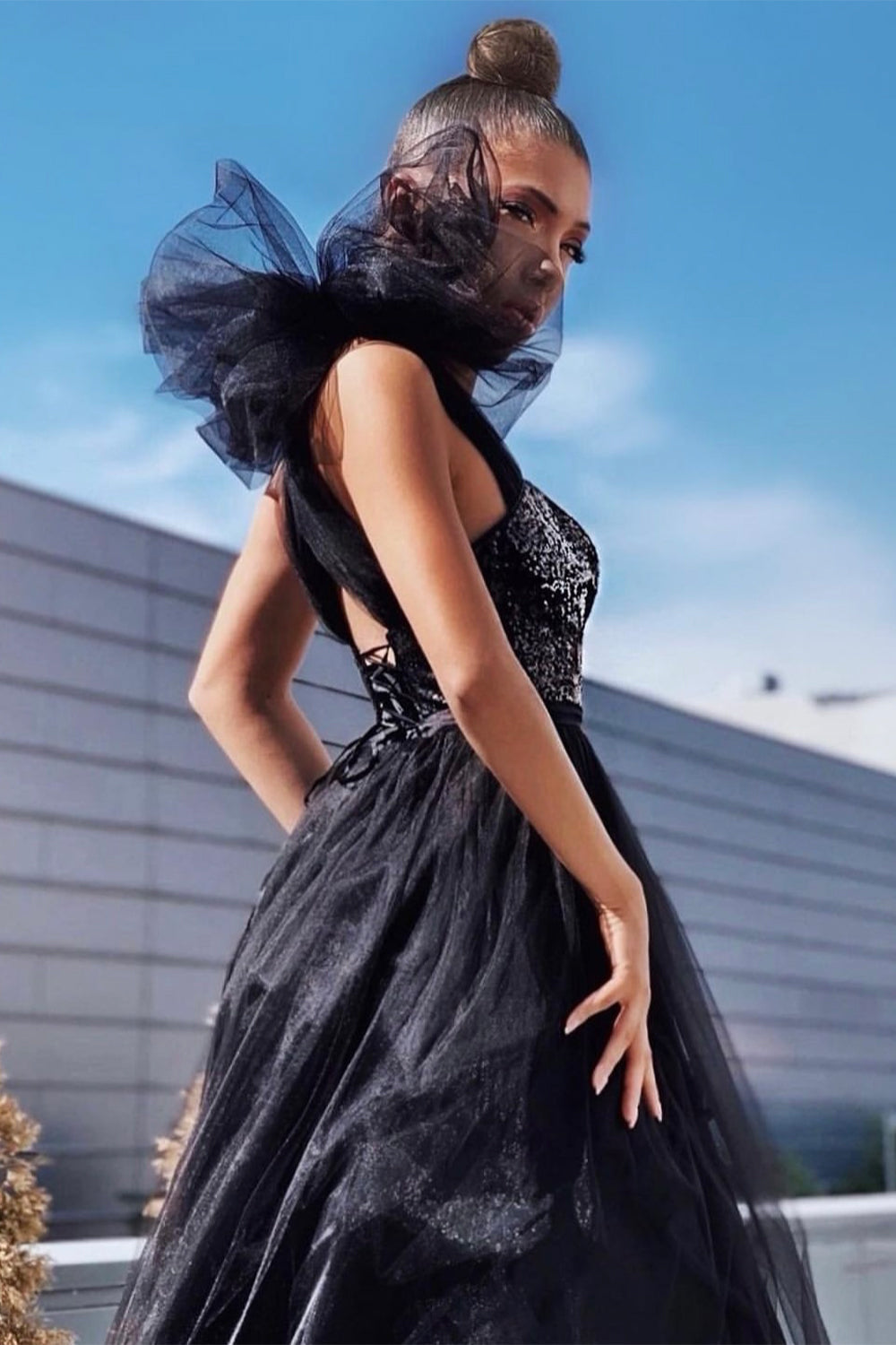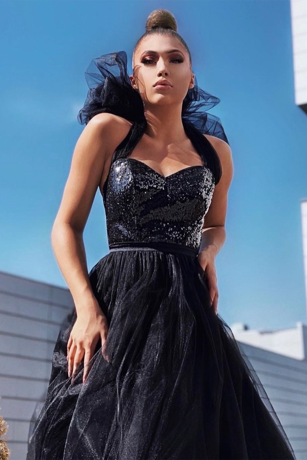 ДЪЛЪГ СЕТ ТОП С ПОЛА REGINA ПАЙЕТИ ТЮЛ ЧЕРЕН