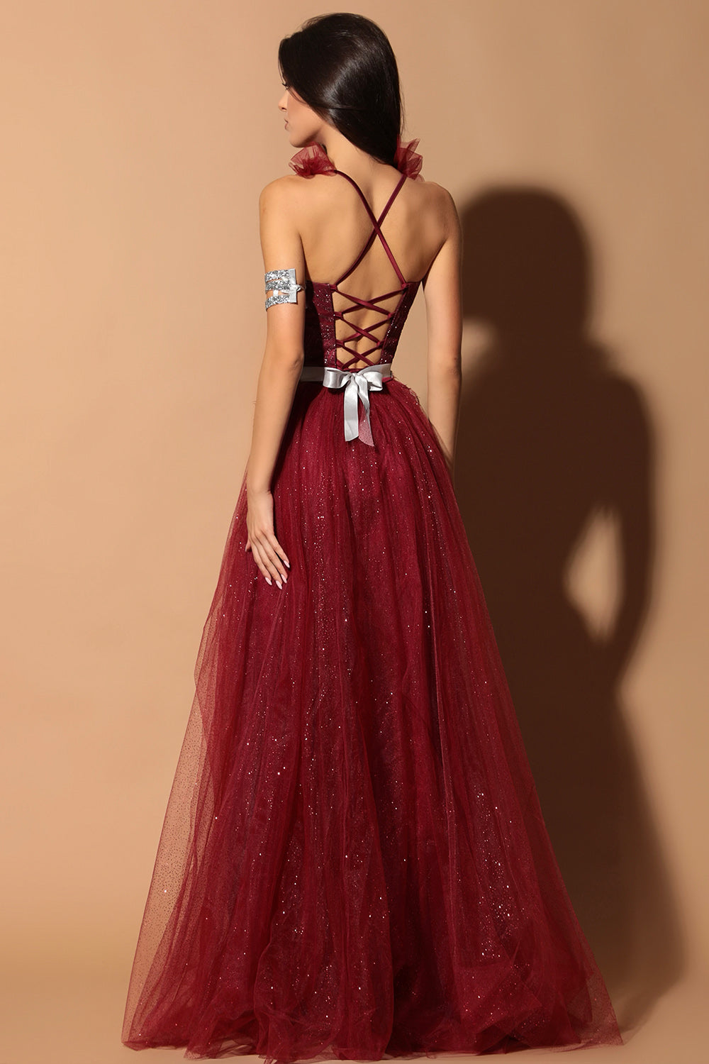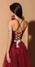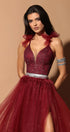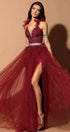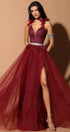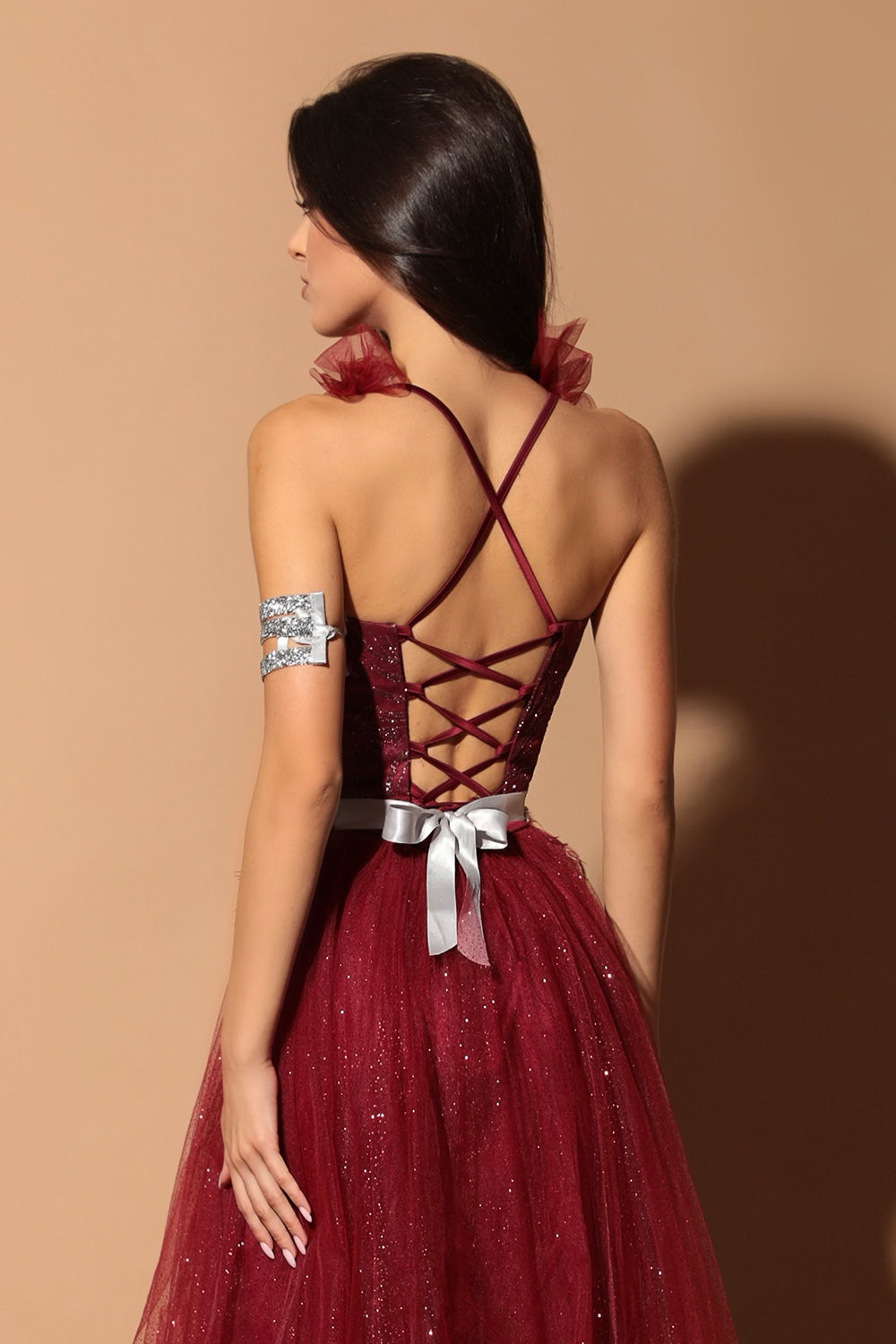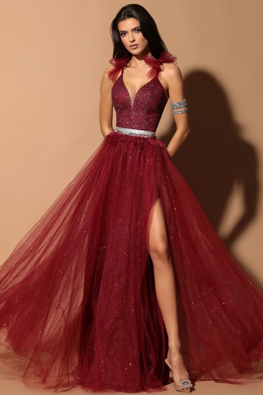 ДЪЛЪГ СЕТ ТОП С ПОЛА RENE ДАНТЕЛА ГЛИТЕР ТЮЛ БРОКАТ БОРДО