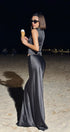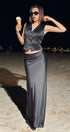 ДЪЛЪГ СЕТ 2 ЧАСТИ ТОП С ПОЛА ROSIE САТЕН ЧЕРЕН