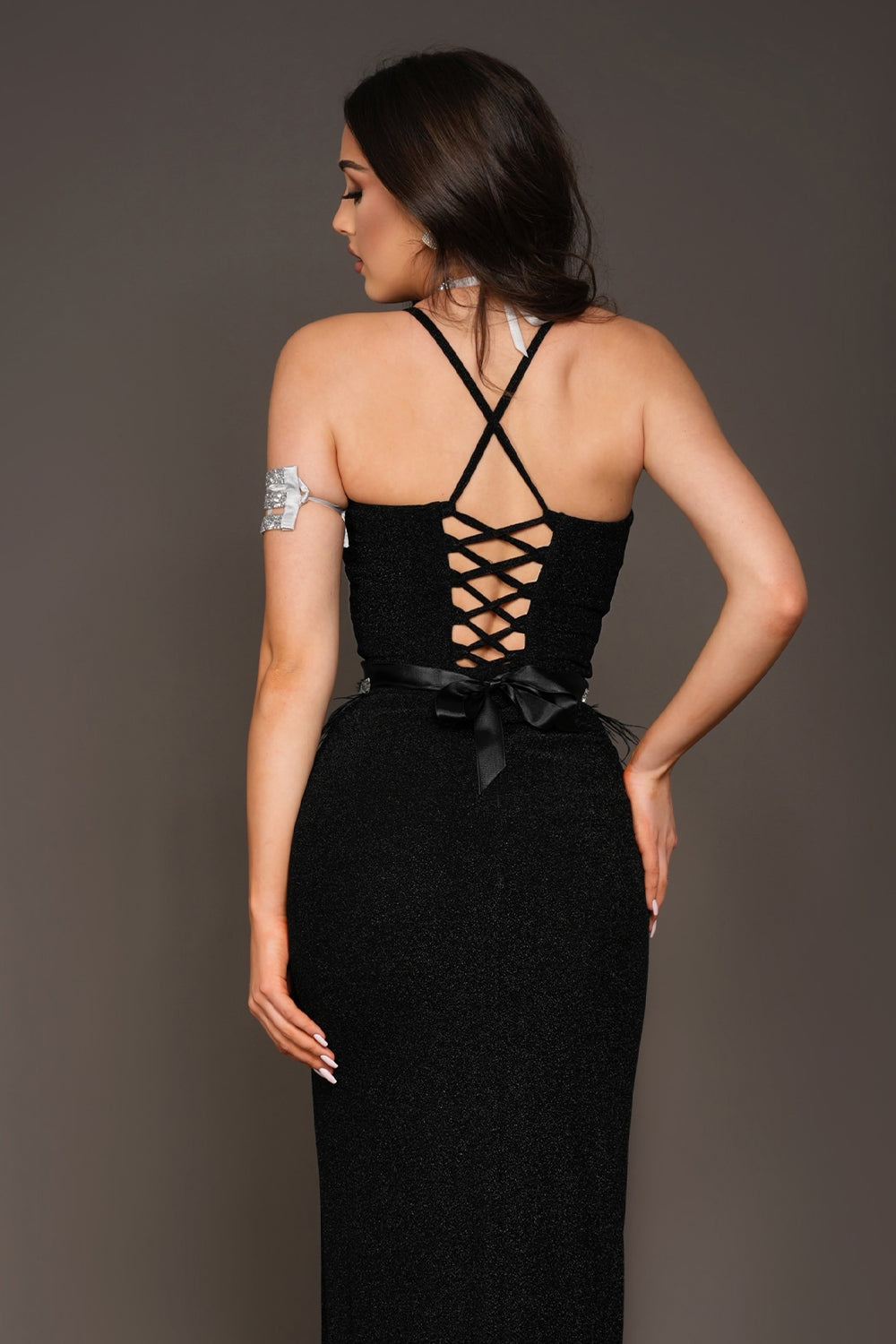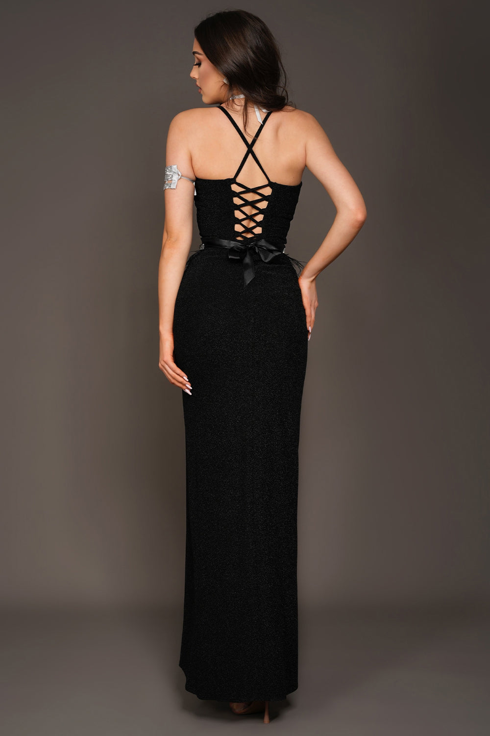 ДЪЛЪГ СЕТ ТОП С ПОЛА RUBY ТРИКО ЛАМЕ ЧЕРЕН