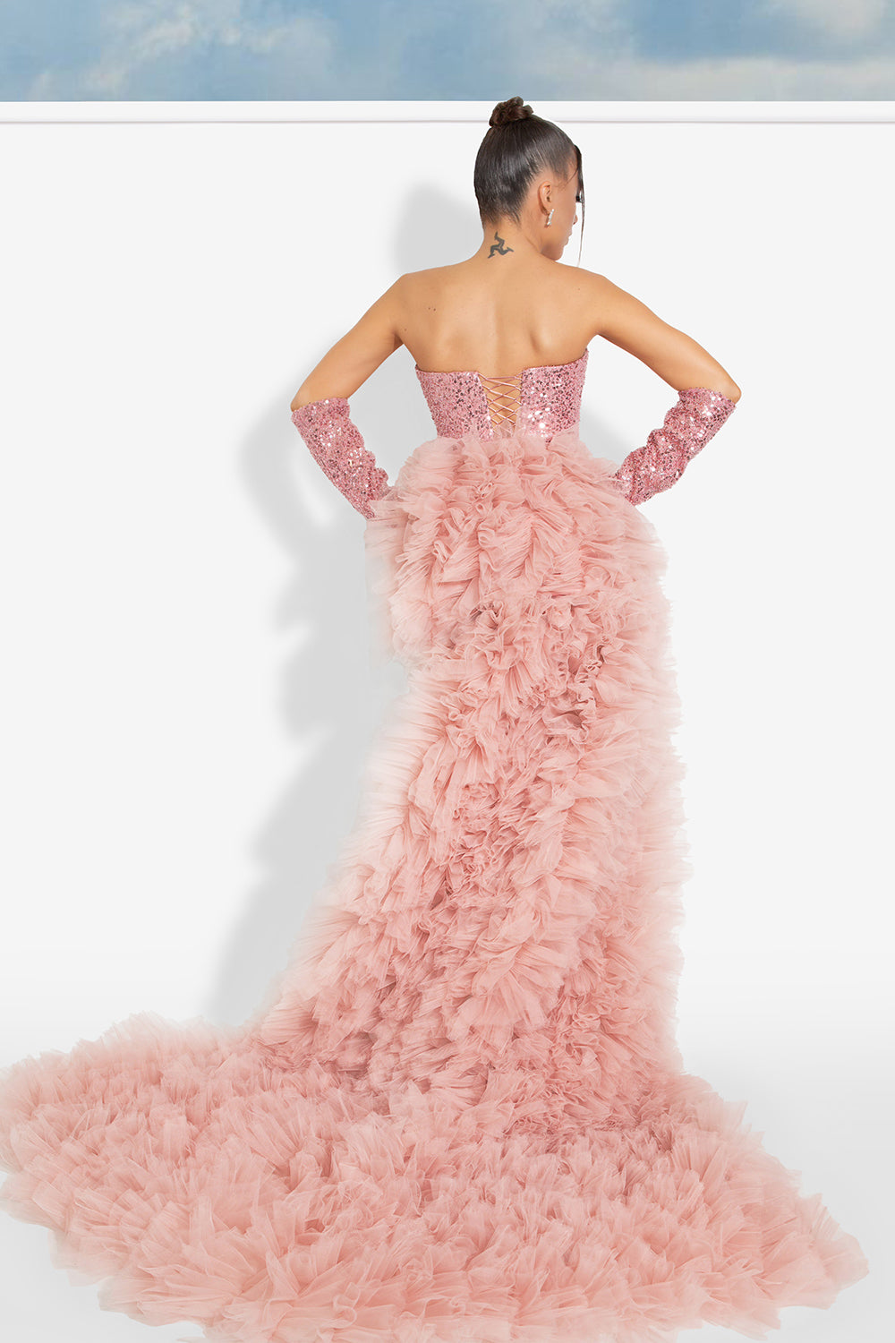 ДЪЛЪГ СЕТ 4 ЧАСТИ ТОП С ПОЛА RUNAWAY BRIDE ПАЙЕТИ ТЮЛ ПУДРА