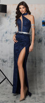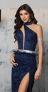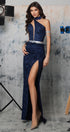 ДЪЛЪГ СЕТ ТОП С ПОЛА SALLY ДАНТЕЛА ГЛИТЕР ТЪМНО СИН