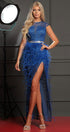 ДЪЛЪГ СЕТ ТОП С ПОЛА SAPPHIRE ДАНТЕЛА ГЛИТЕР ПЕРА КОБАЛТОВО СИН
