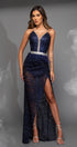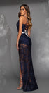ДЪЛЪГ СЕТ ТОП С ПОЛА SYLVIE ДАНТЕЛА ГЛИТЕР КАМЪНИ ТЪМНО СИН