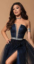 ДЪЛЪГ СЕТ ТОП С ПОЛА TIANA ДАНТЕЛА ГЛИТЕР КАМЪНИ ТЮЛ БРОКАТ ТЪМНО СИН
