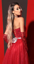 ДЪЛЪГ СЕТ ТОП С ПОЛА TIANA ДАНТЕЛА ГЛИТЕР КАМЪНИ ЧЕРВЕН