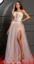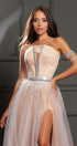 ДЪЛЪГ СЕТ ТОП С ПОЛА TIANA ДАНТЕЛА ГЛИТЕР КАМЪНИ ТЮЛ БРОКАТ БЯЛ С НЮД
