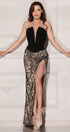 ДЪЛЪГ СЕТ ТОП С ПОЛА VANESSA ТРИКО ЛАМЕ ДАНТЕЛА ГЛИТЕР ЧЕРЕН С НЮД