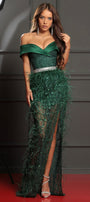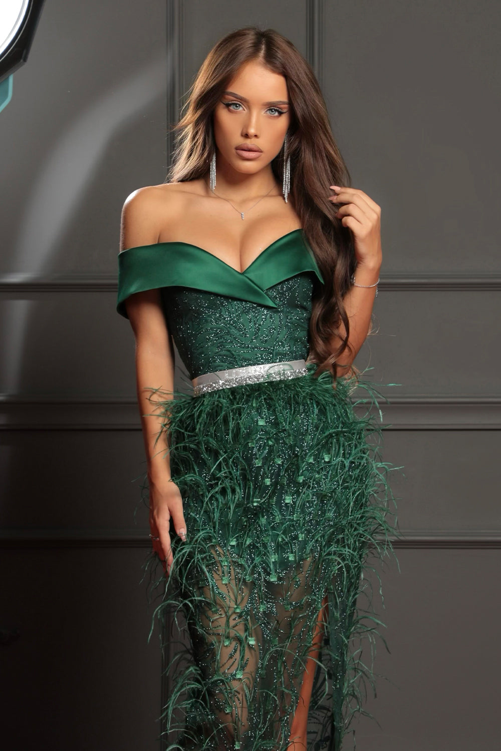 ДЪЛЪГ СЕТ ТОП С ПОЛА VIVIETTE ДАНТЕЛА ГЛИТЕР САТЕН ПЕРА ТЪМНО ЗЕЛЕН