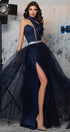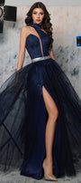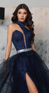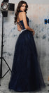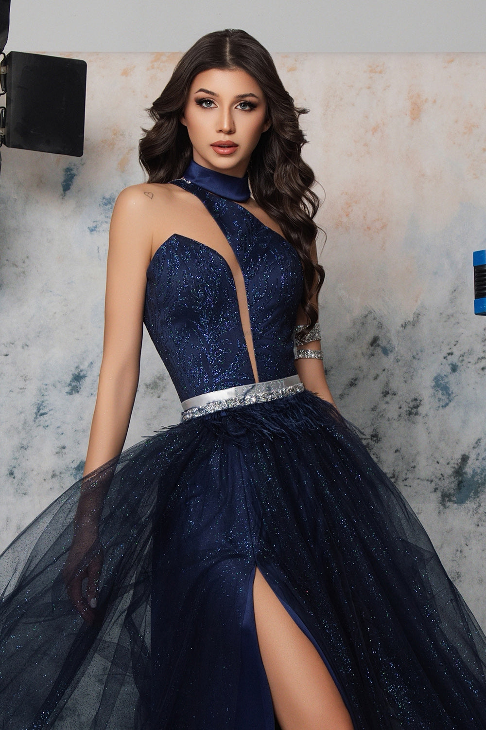 ДЪЛЪГ СЕТ ТОП С ПОЛА WILMA ДАНТЕЛА ГЛИТЕР ТЮЛ БРОКАТ ТЪМНО СИН