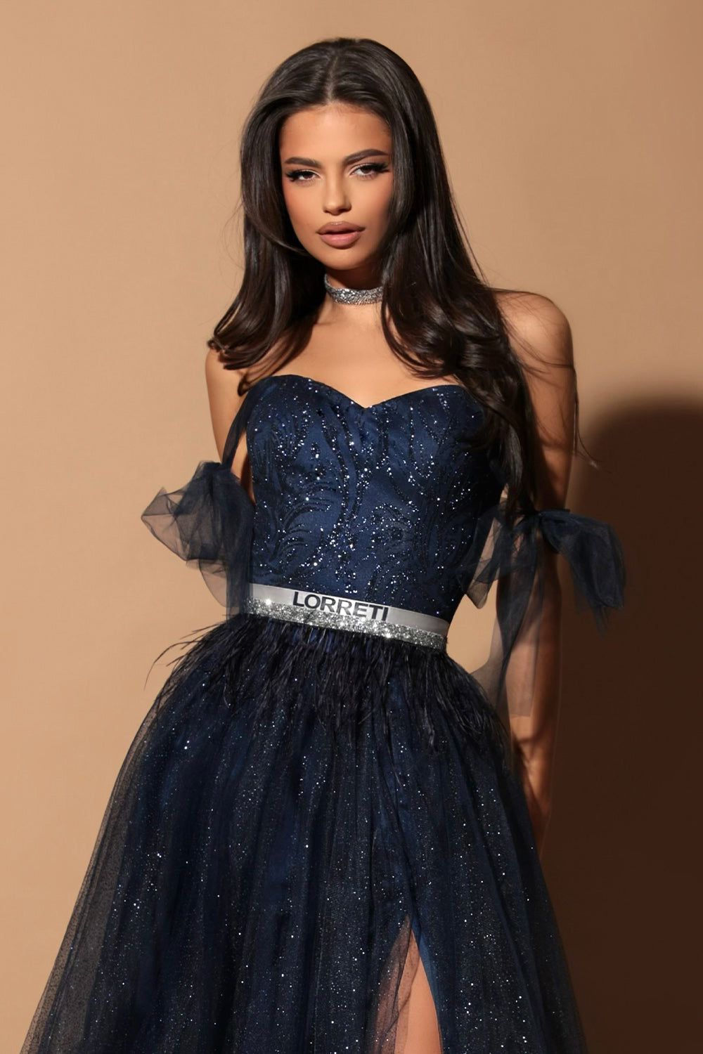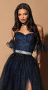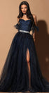 ДЪЛЪГ СЕТ ТОП С ПОЛА YASMINE ДАНТЕЛА ГЛИТЕР ТЮЛ БРОКАТ ТЪМНО СИН