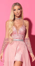 ДЪЛЪГ СЕТ ТОП С ПОЛА ZARIAH ДАНТЕЛА ГЛИТЕР САТЕН ШИФОН ПУДРА