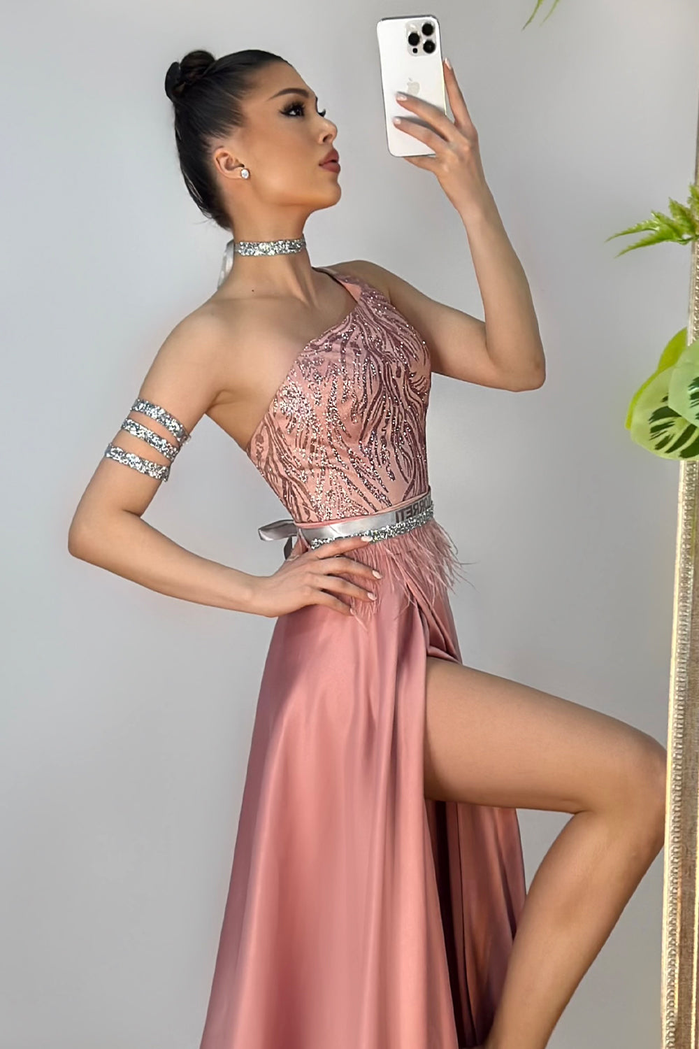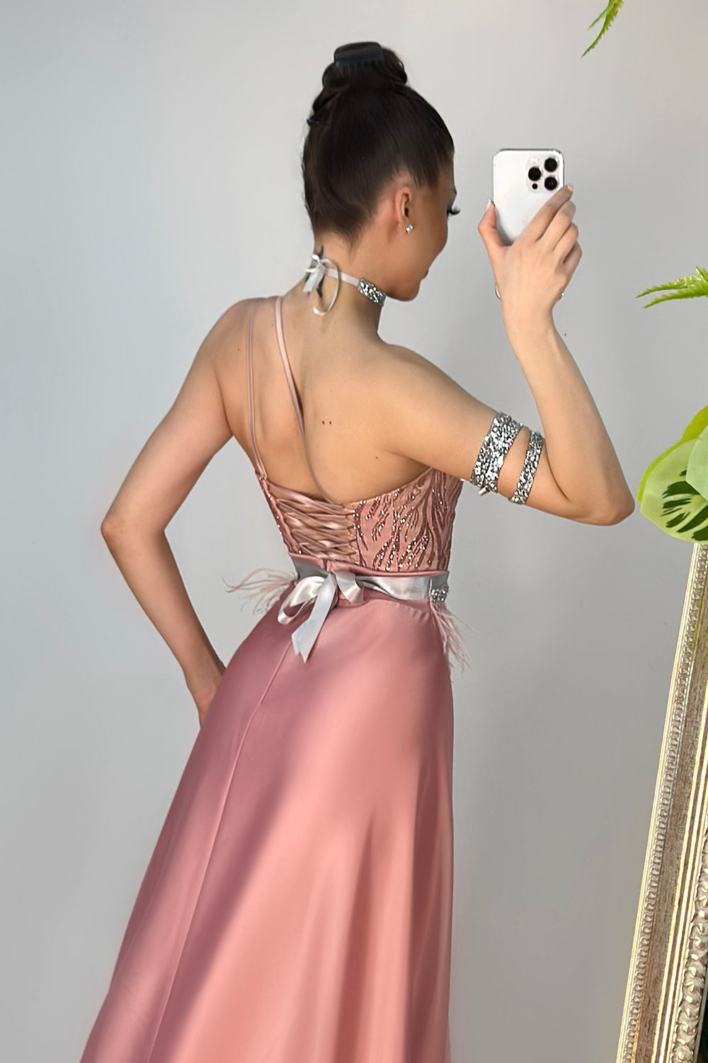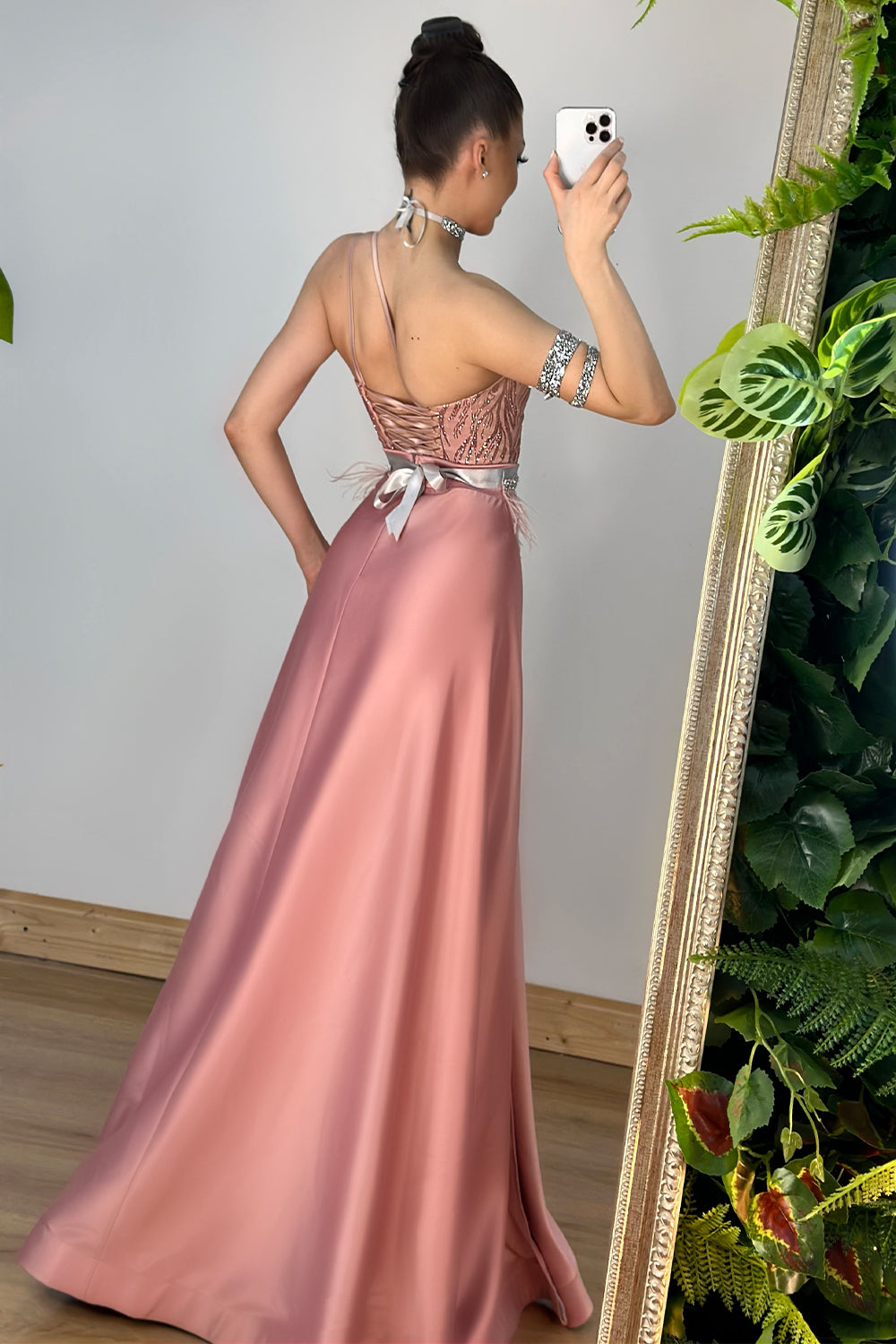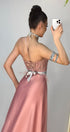 ДЪЛЪГ СЕТ ТОП С ПОЛА ZAYLA ДАНТЕЛА ГЛИТЕР САТЕН ПЕПЕЛ ОТ РОЗИ