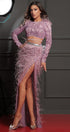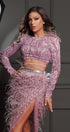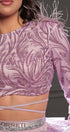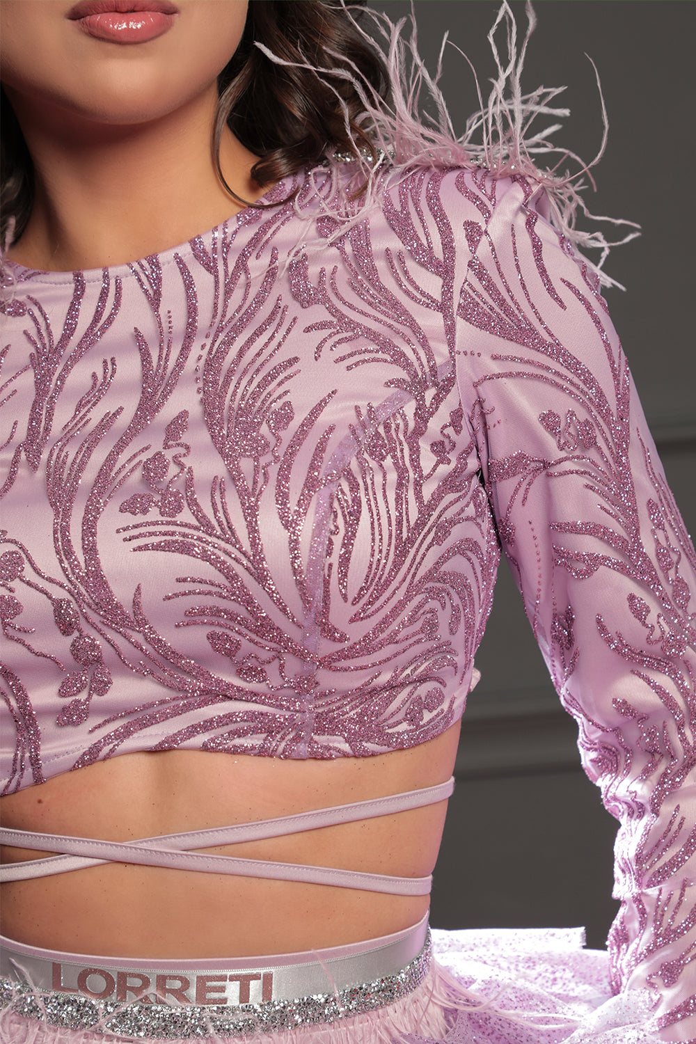 ДЪЛЪГ СЕТ ТОП С ПОЛА ZINA ДАНТЕЛА ГЛИТЕР ПЕРА ЛАВАНДУЛА