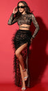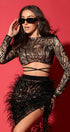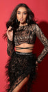 ДЪЛЪГ СЕТ ТОП С ПОЛА ZINA ДАНТЕЛА ГЛИТЕР КАМЪНИ ПЕРА ЧЕРЕН С НЮД