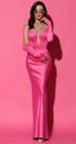 ДЪЛЪГ СЕТ ТОП С ПОЛА ZORA САТЕН ЯРКО РОЗОВ