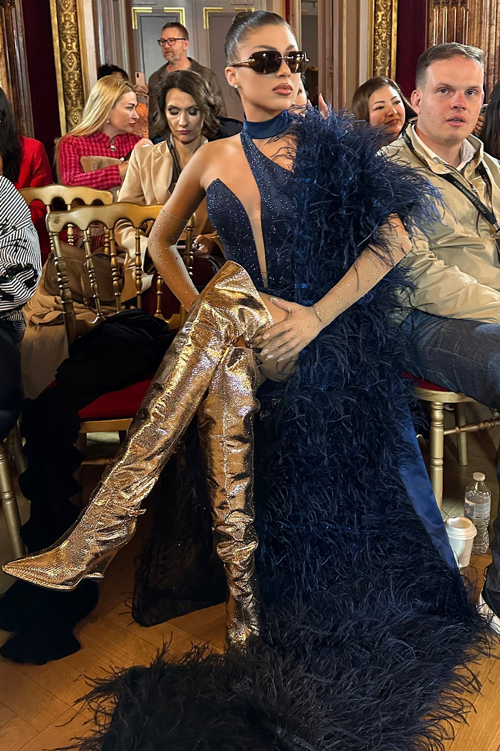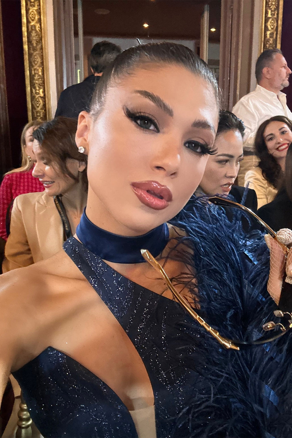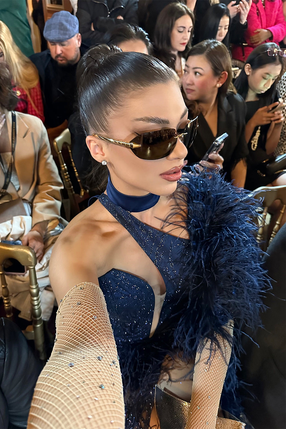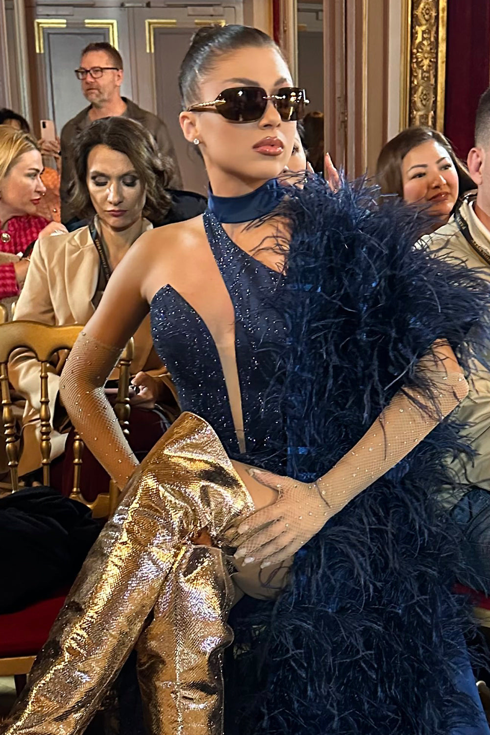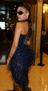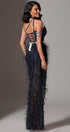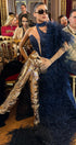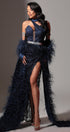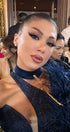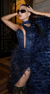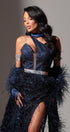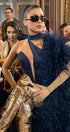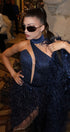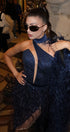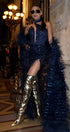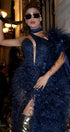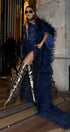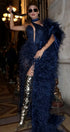 ДЪЛЪГ СЕТ ТОП С ПОЛА И ШАЛ NOLAN ДАНТЕЛА ГЛИТЕР ПЕРА ТЪМНО СИН