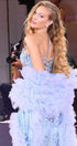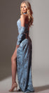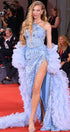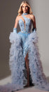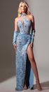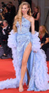ДЪЛЪГ СЕТ ТОП С ПОЛА И ШАЛ WINTER ДАНТЕЛА САТЕН ТЮЛ СВЕТЛО СИН
