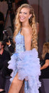Моля, не поставяйте роклята в пералня с центрофуга или в сушилня, както и не прилагайте агресивно третиране, за да запазите нейния луксозен силует и качество.