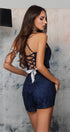 МИНИ СЕТ ТОП С ПАНТАЛОН ADEOLA ДАНТЕЛА ГЛИТЕР КАМЪНИ ТЪМНО СИН