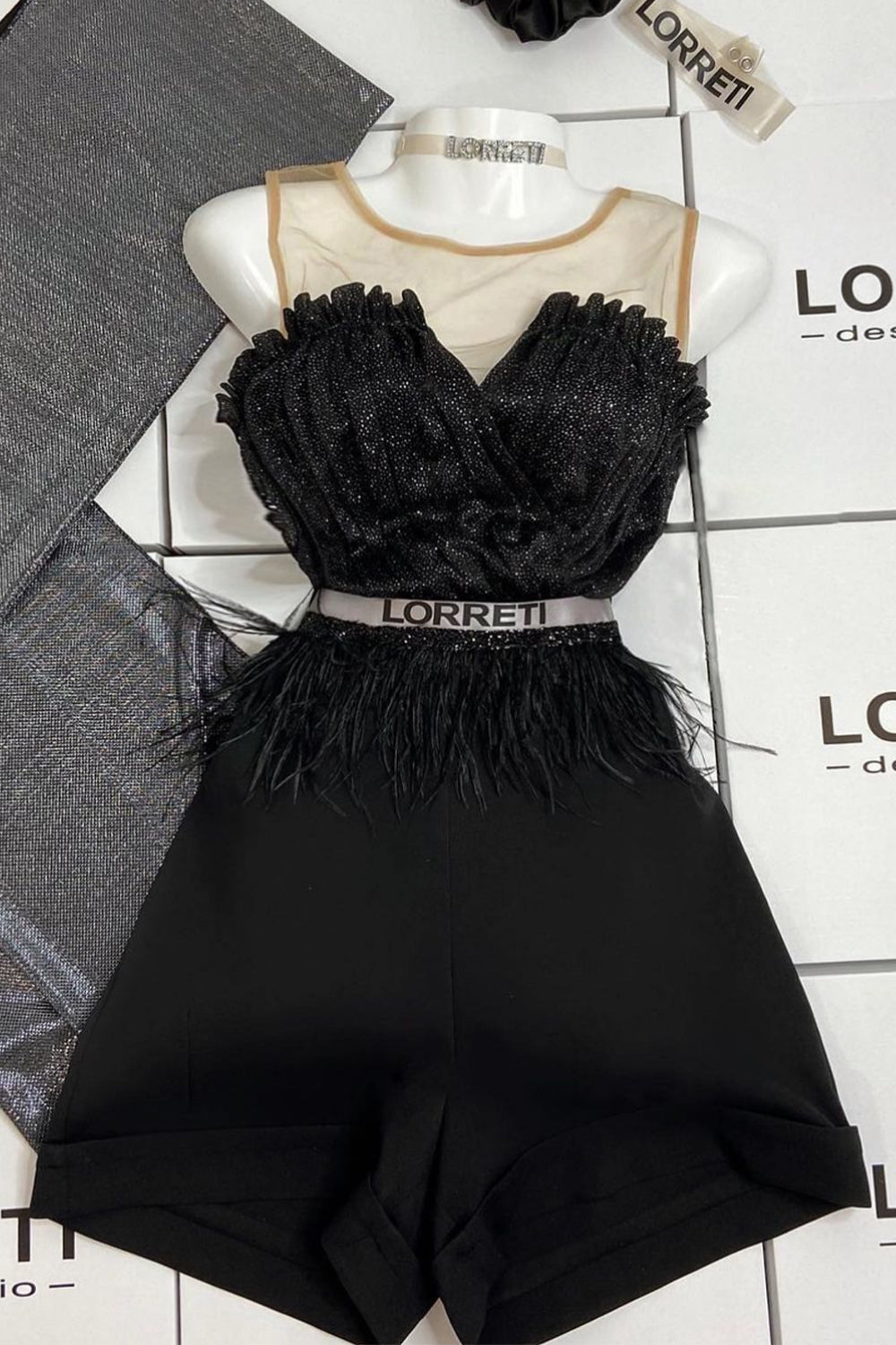 МИНИ СЕТ ТОП С ПАНТАЛОН LOGAN ТРИКО БРОКАТ ЧЕРЕН