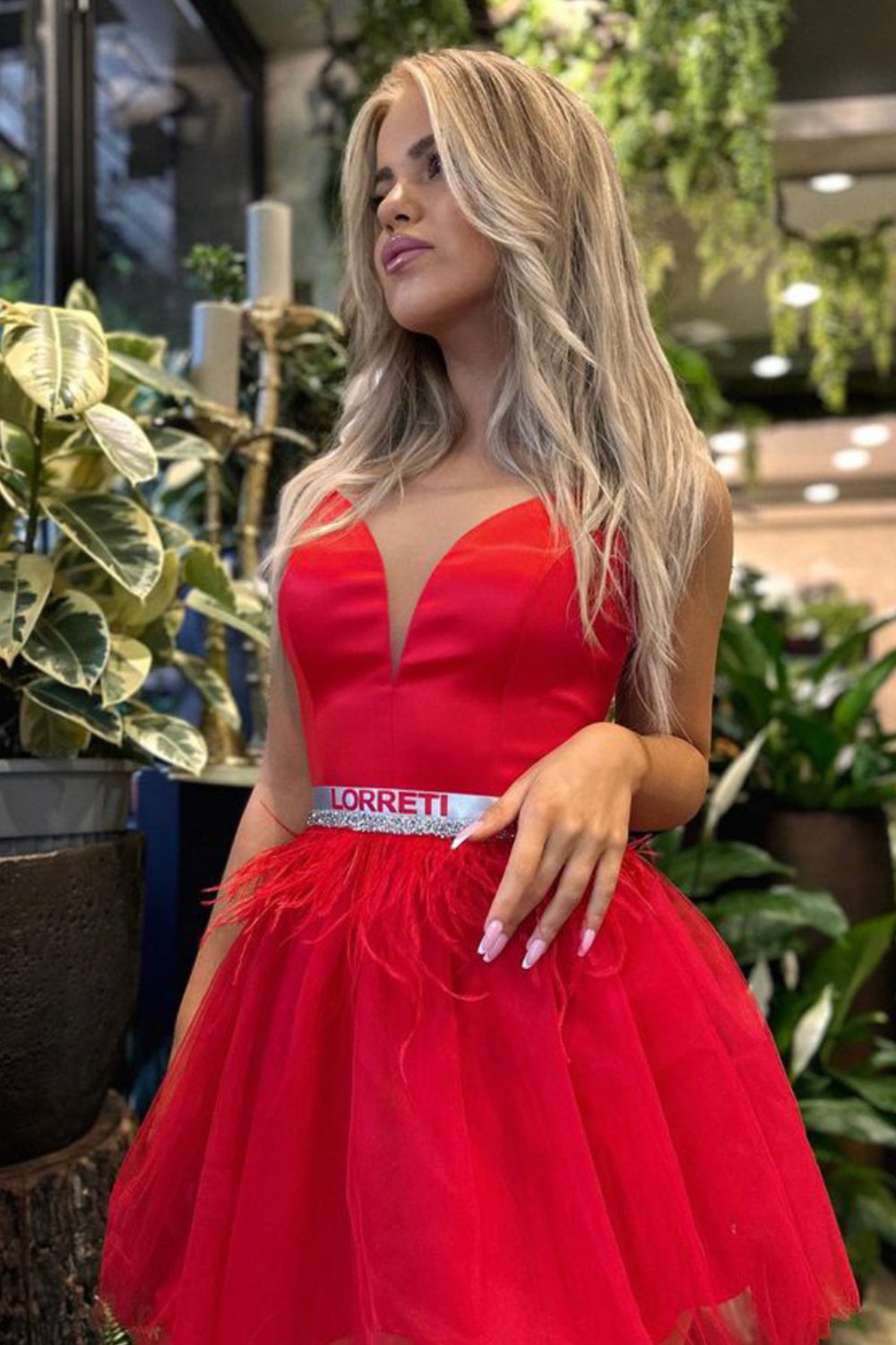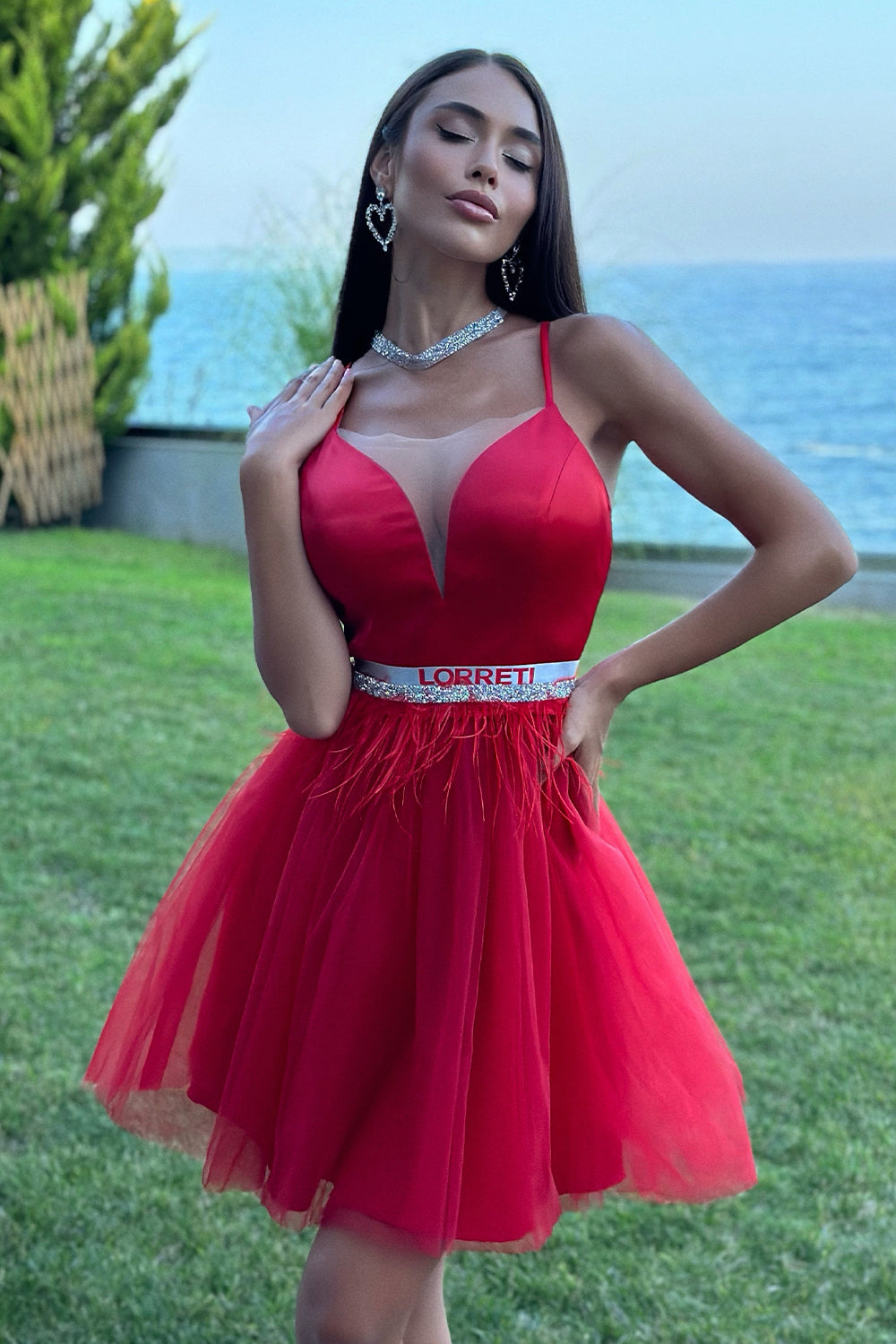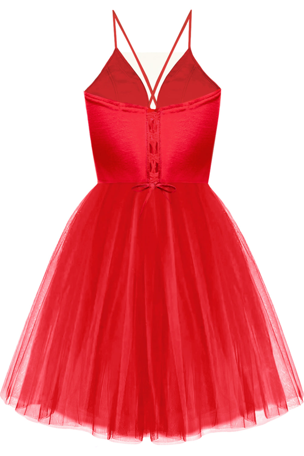 МИНИ РОКЛЯ ANNI САТЕН ТЮЛ ЧЕРВЕН