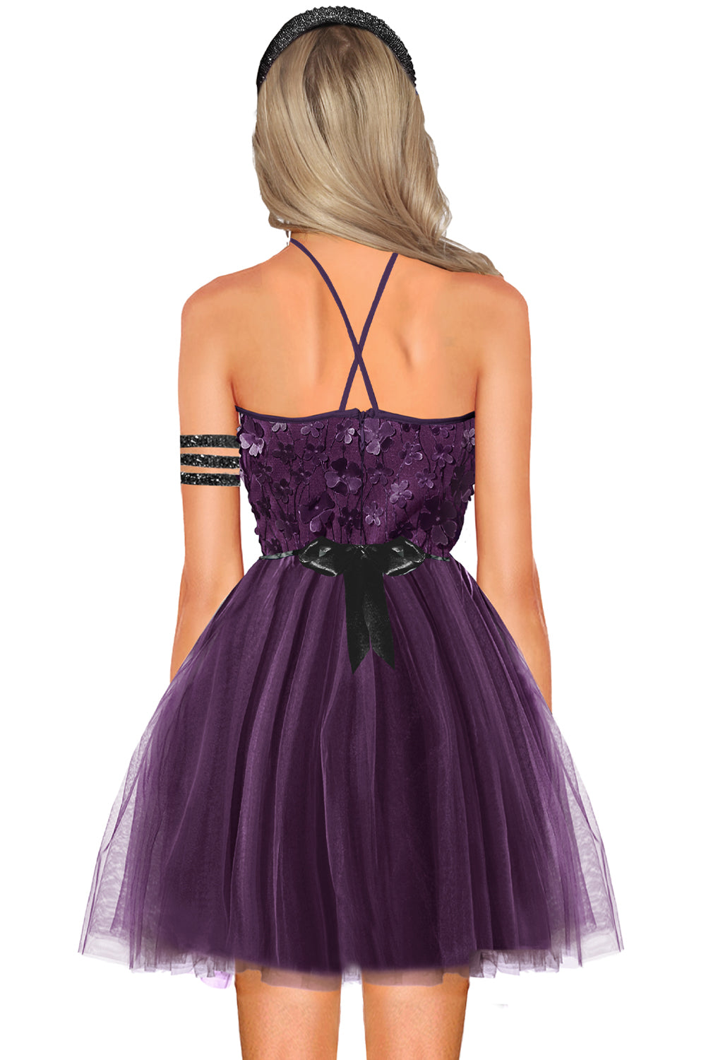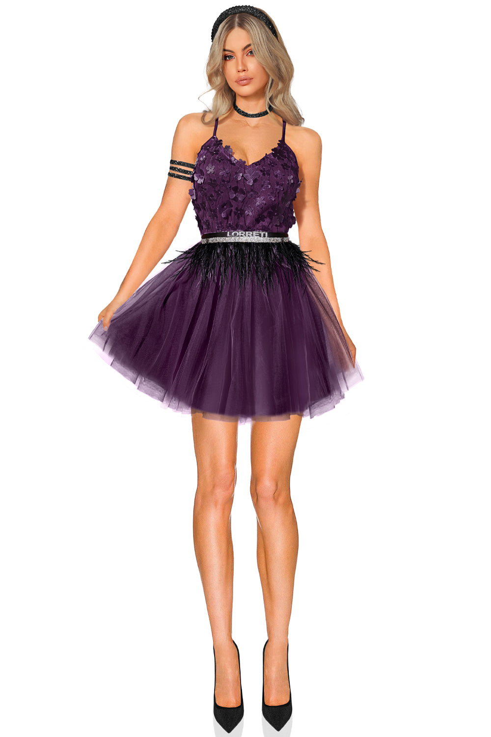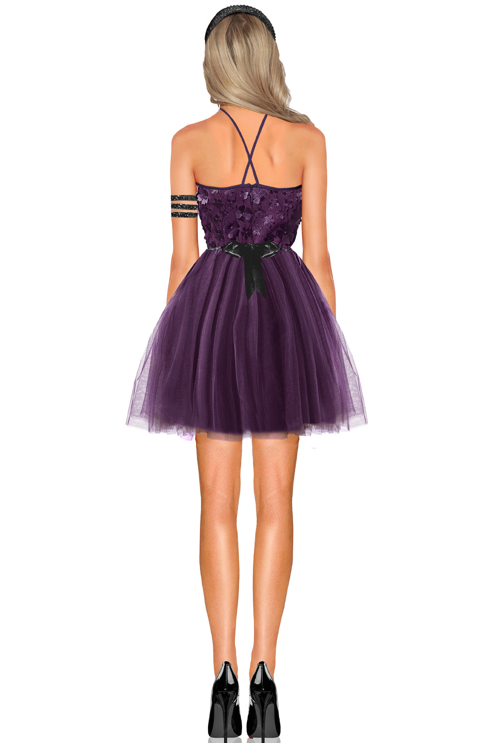 МИНИ РОКЛЯ ARIA ДАНТЕЛА ТЮЛ ТЪМНО ЛИЛАВ