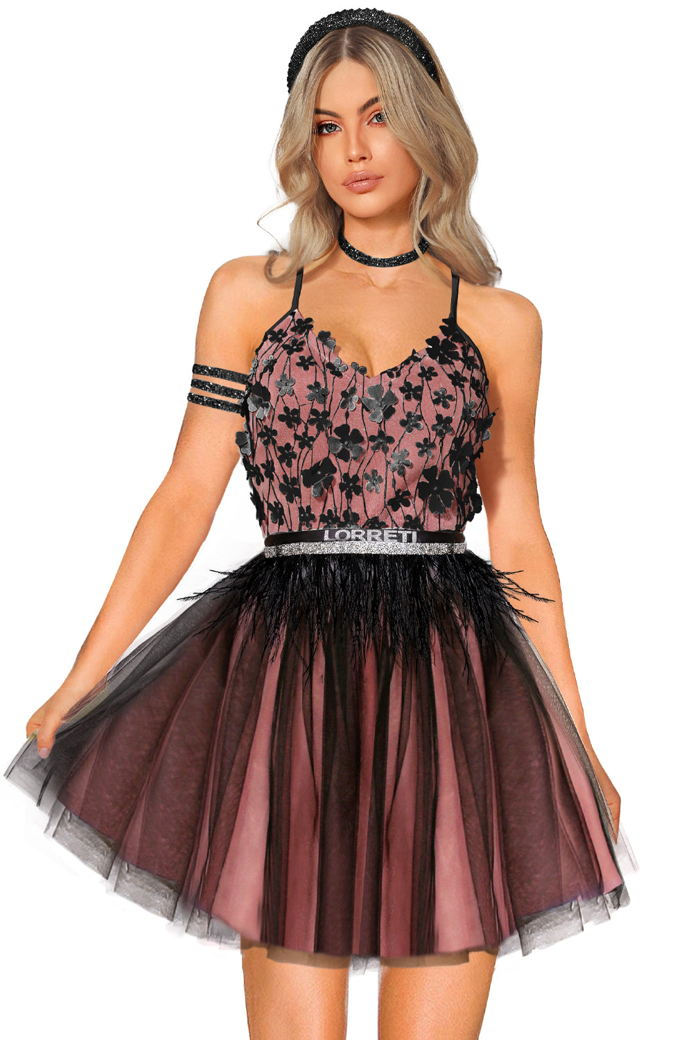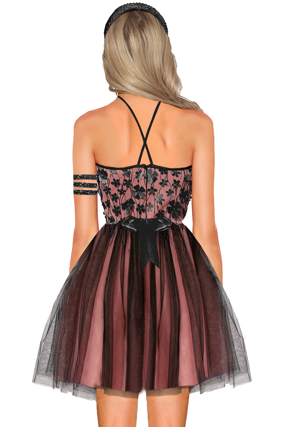 МИНИ РОКЛЯ ARIA ДАНТЕЛА ТЮЛ РОЗОВ С ЧЕРЕН