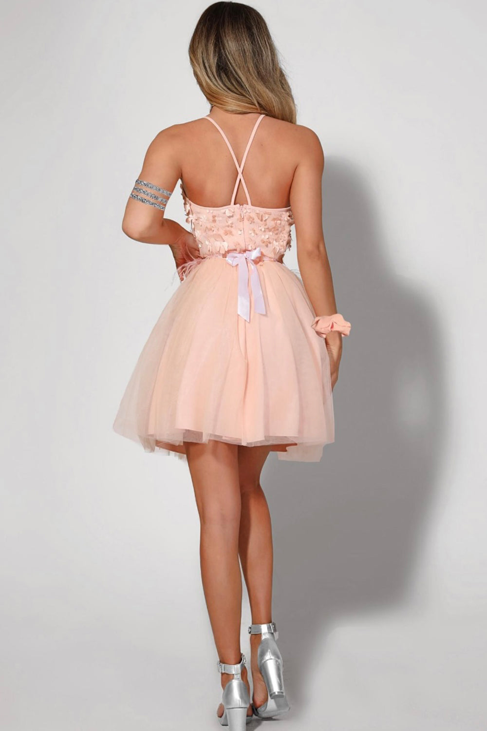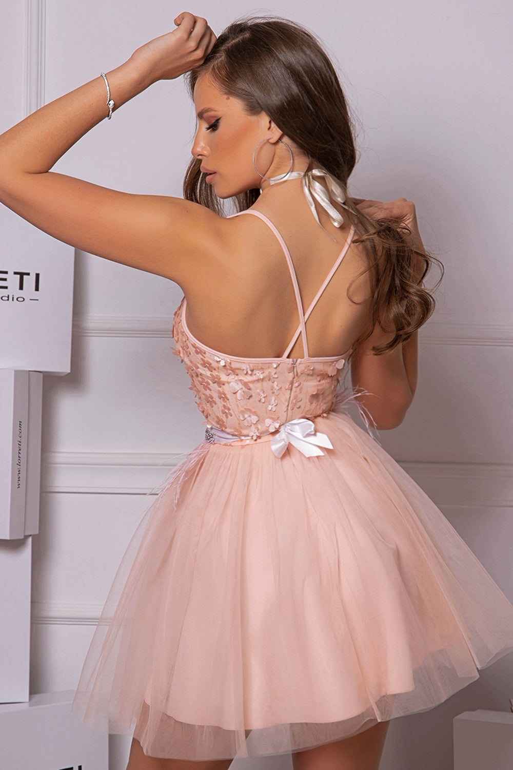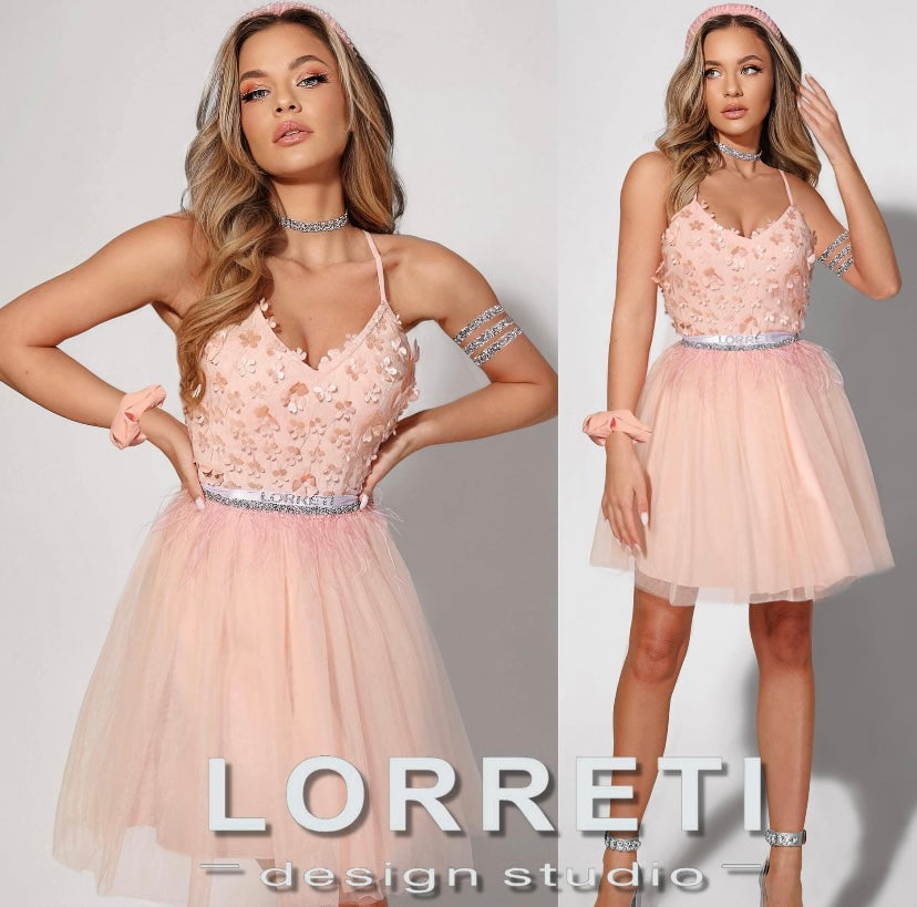 МИНИ РОКЛЯ ARIA ДАНТЕЛА ТЮЛ НЕЖНА ПРАСКОВА